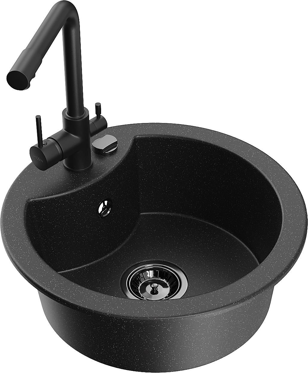 Mexen Diego granitē izlietne ar vienu nodalījumu un virtuves maisītāju Duero, melns/sudraba metālika - 6512-73-671600-70-B