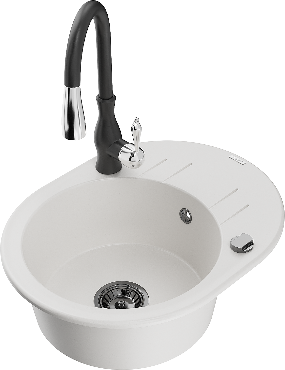 Mexen Kevin 1 nodalā granīta izlietne ar novietni un virtuves maisītāju Savita, balta - 6517-20-672601-70