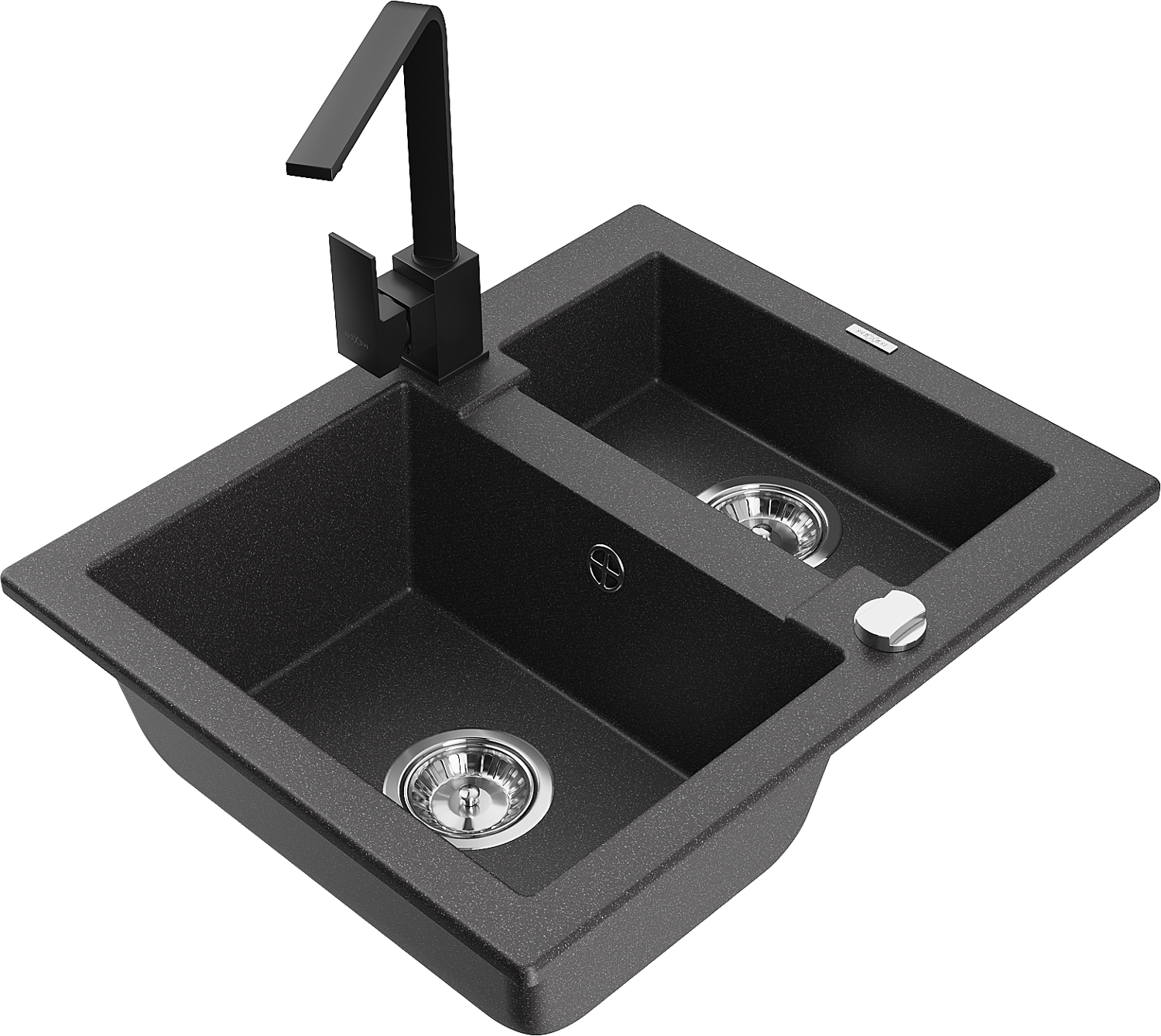 Mexen Carlos granitā izlietne ar 1,5 kameru un virtuves maisītāju Rita, melna ar baltām punktiem - 6518-76-670300-70