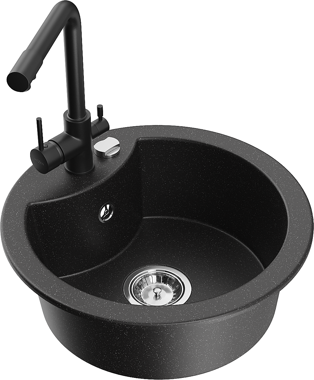 Mexen Diego granitizlietne viena nodalījuma izlietne ar virtuves jaucējkrānu Duero, melna/sudraba metālika - 6512-73-671600-70