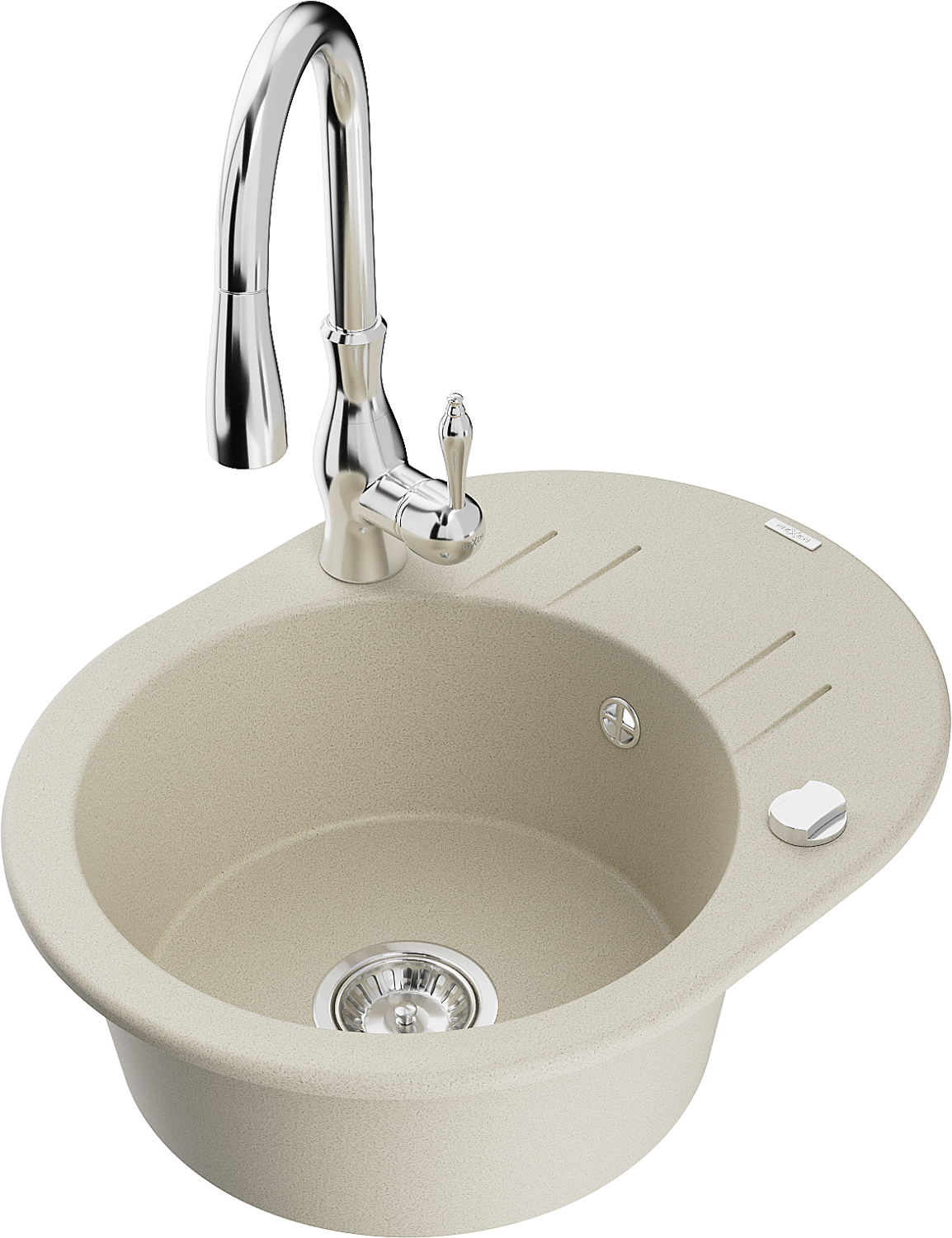 Mexen Kevin granitā izlietne ar 1 nodalījumu, noteci un virtuves jaucējkrānu Savita, bēšs - 6517-69-672601-00