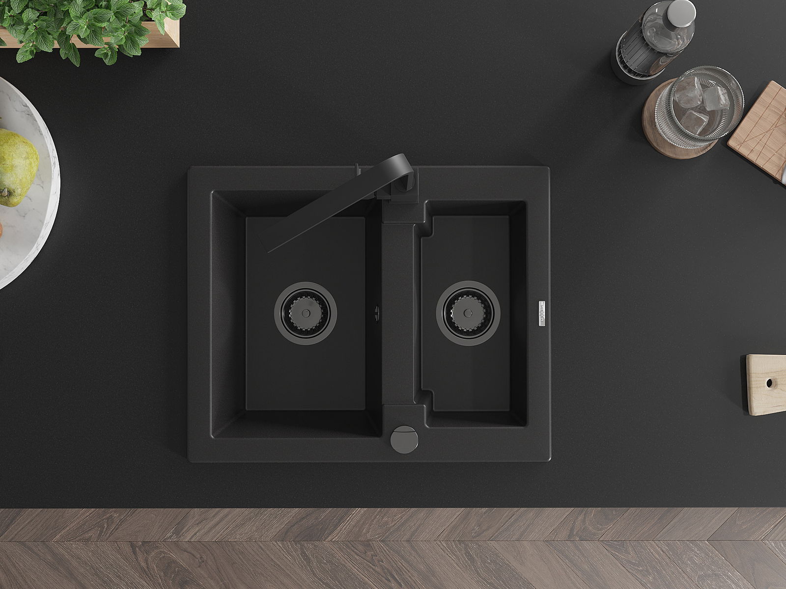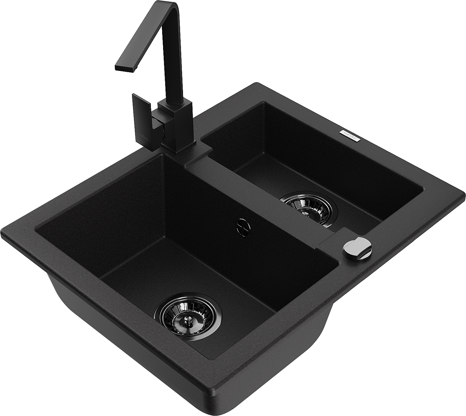 Mexen Carlos granīta izlietne ar 1,5 nodalījumu un virtuves jaucējkrānu Rita, melna - 6518-77-670300-70-B