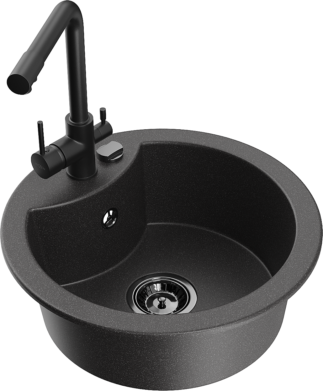 Mexen Diego granitizlietne viena bļoda ar virtuves jaucējkrānu Duero, melns ar punktiem - 6512-76-671600-70-B