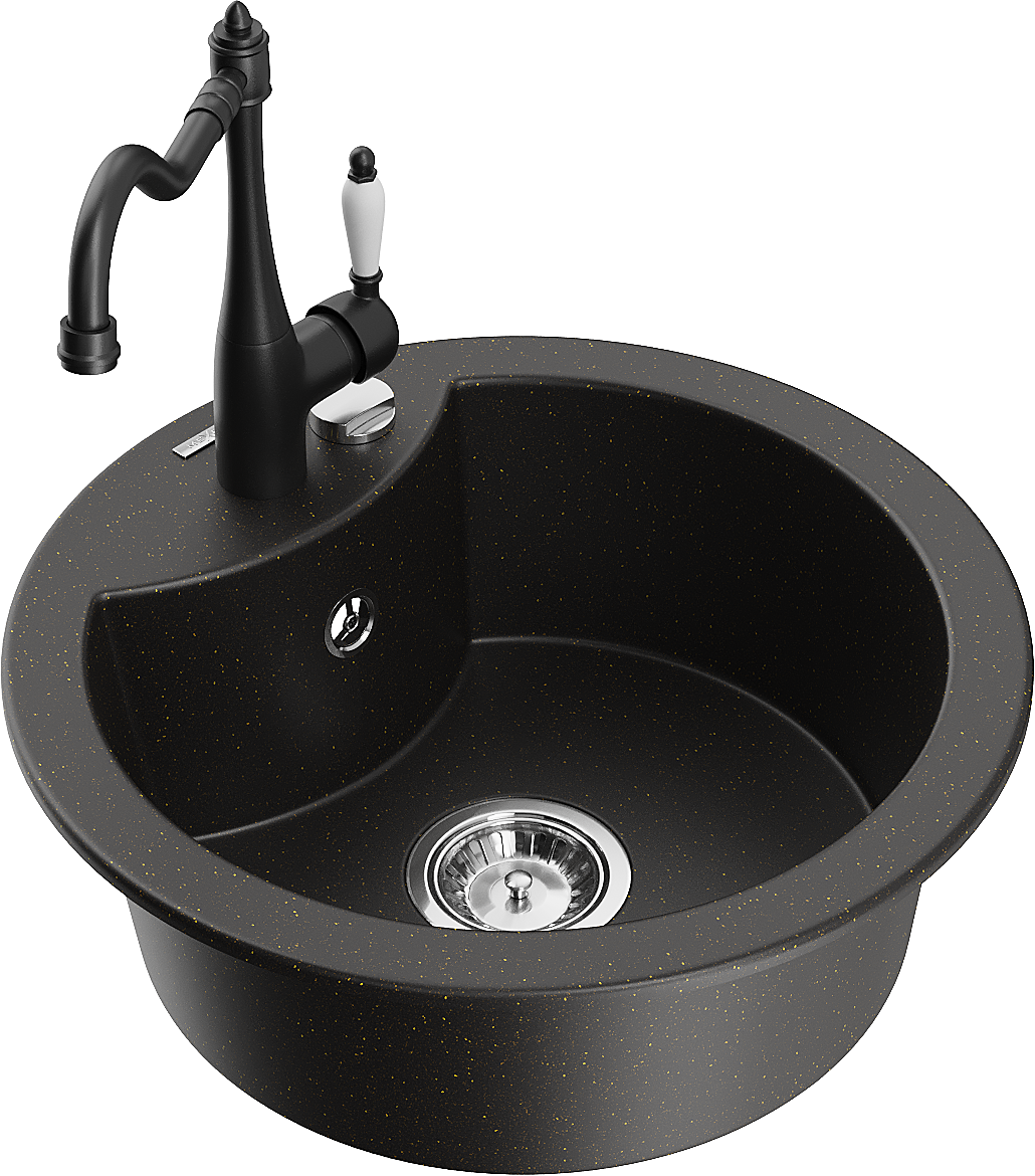 Mexen Diego vienkameras granīta izlietne ar virtuves jaucējkrānu Carla, melna/zeltīta metāliska - 6512-75-670700-70