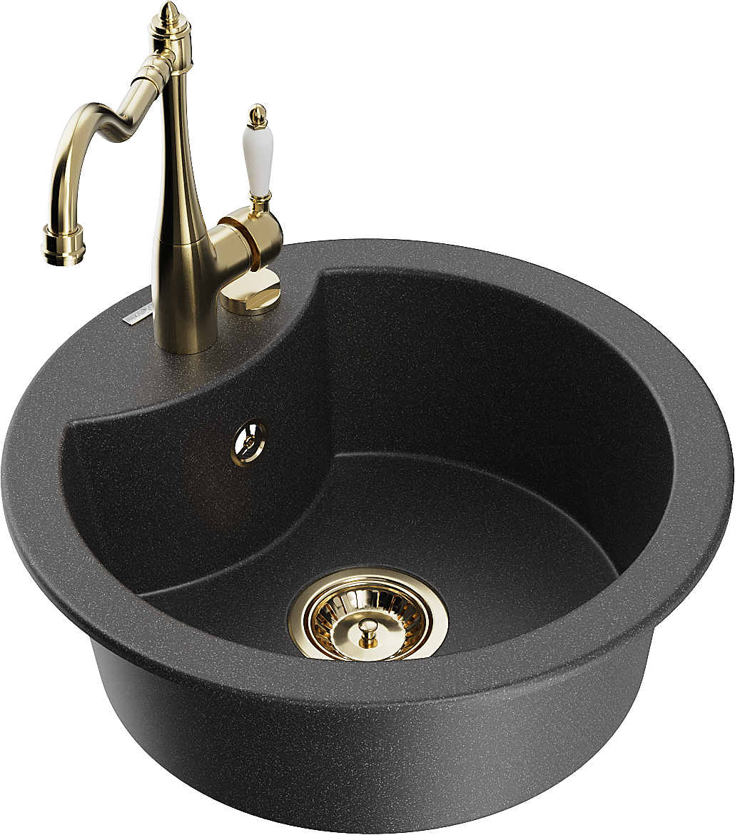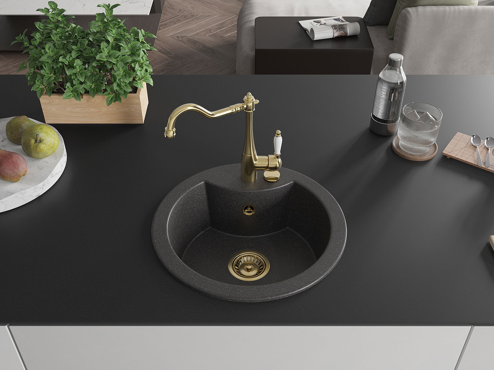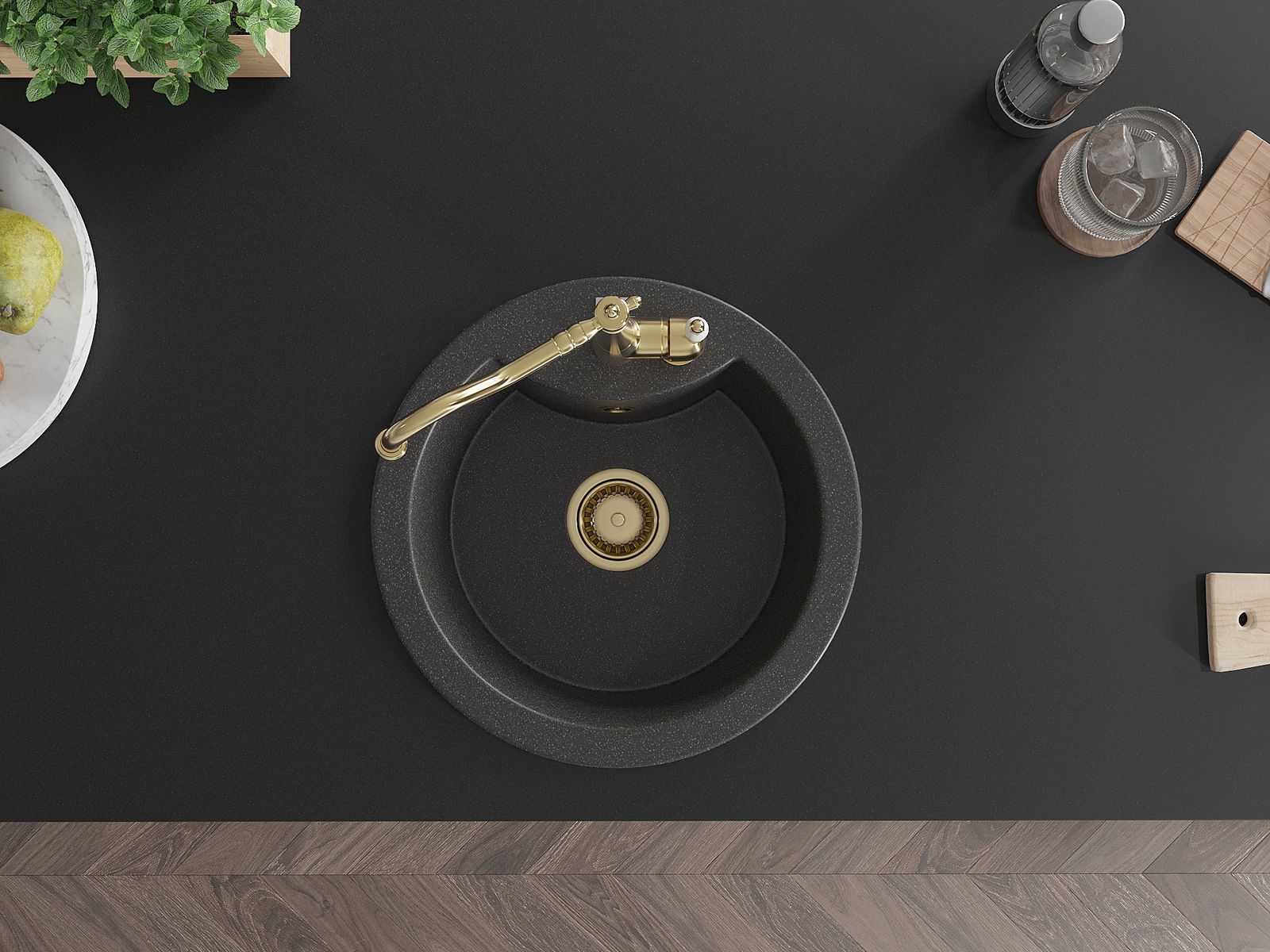 Mexen Diego granitizlietne ar vienu nodalījumu un virtuves jaucējkrānu Carla, melns ar plankumiem - 6512-76-670700-50