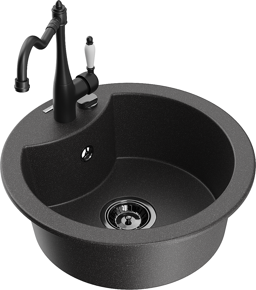 Mexen Diego granitizlietnes 1 nodalījuma izlietne ar virtuves jaucējkrānu Carla, melni raiba - 6512-76-670700-70-B