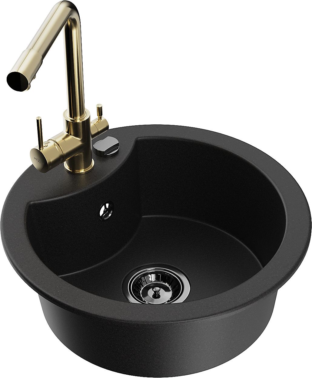 Mexen Diego granit izlietne ar vienu nodalījumu un virtuves krānu Duero, melns - 6512-77-671600-50-B