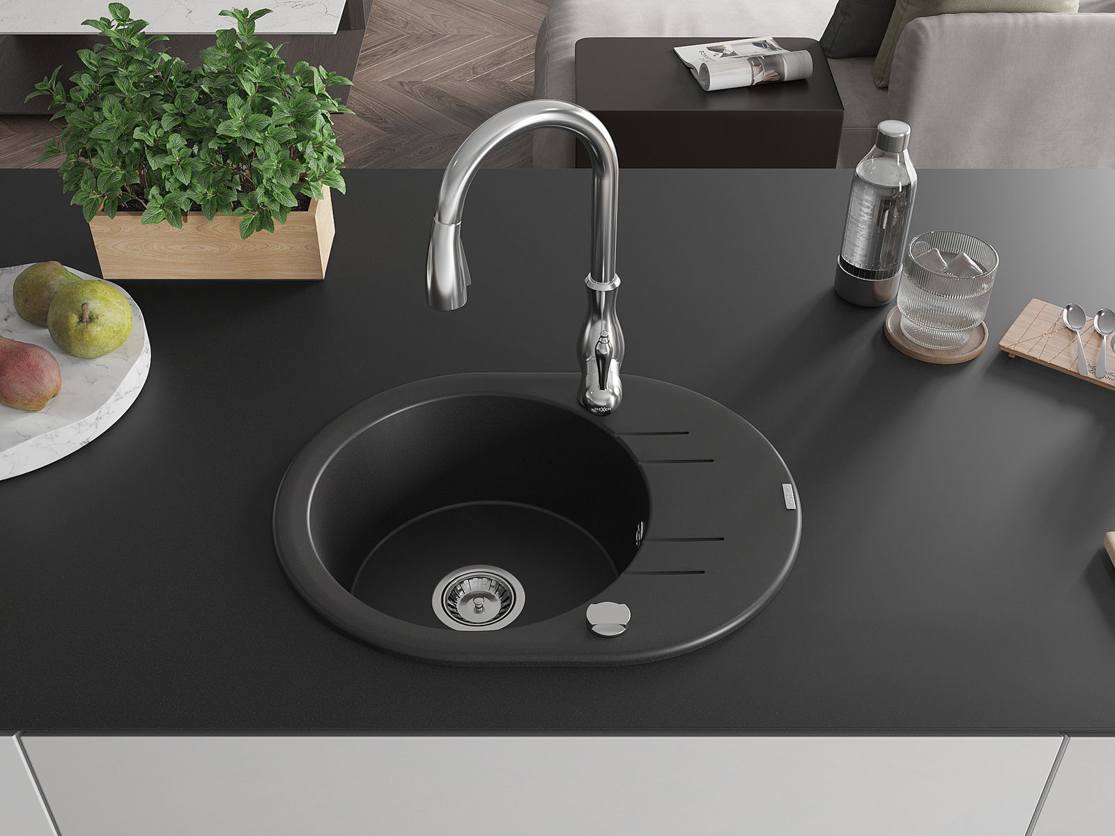 Izlietne ir izgatavota no augstas kvalitātes granīta. Tā ir elegants un, pats galvenais, praktisks jebkuras virtuves papildinājums, neatkarīgi no tās stila. Augsta kvalitāte un granīta izturība nodrošina ilgstošu lietošanu.