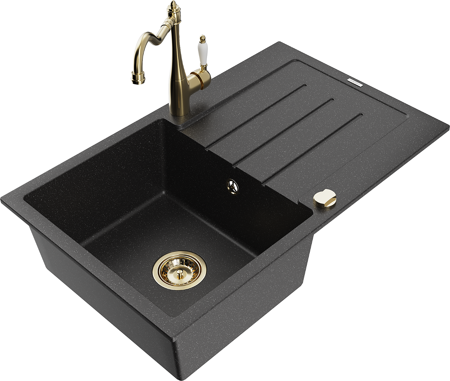 Mexen Bruno 1-kameras granīta izlietne ar notecētāju un virtuvē jaucējkrānu Carla, melns/sudraba metāliks - 6513-73-670700-50