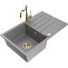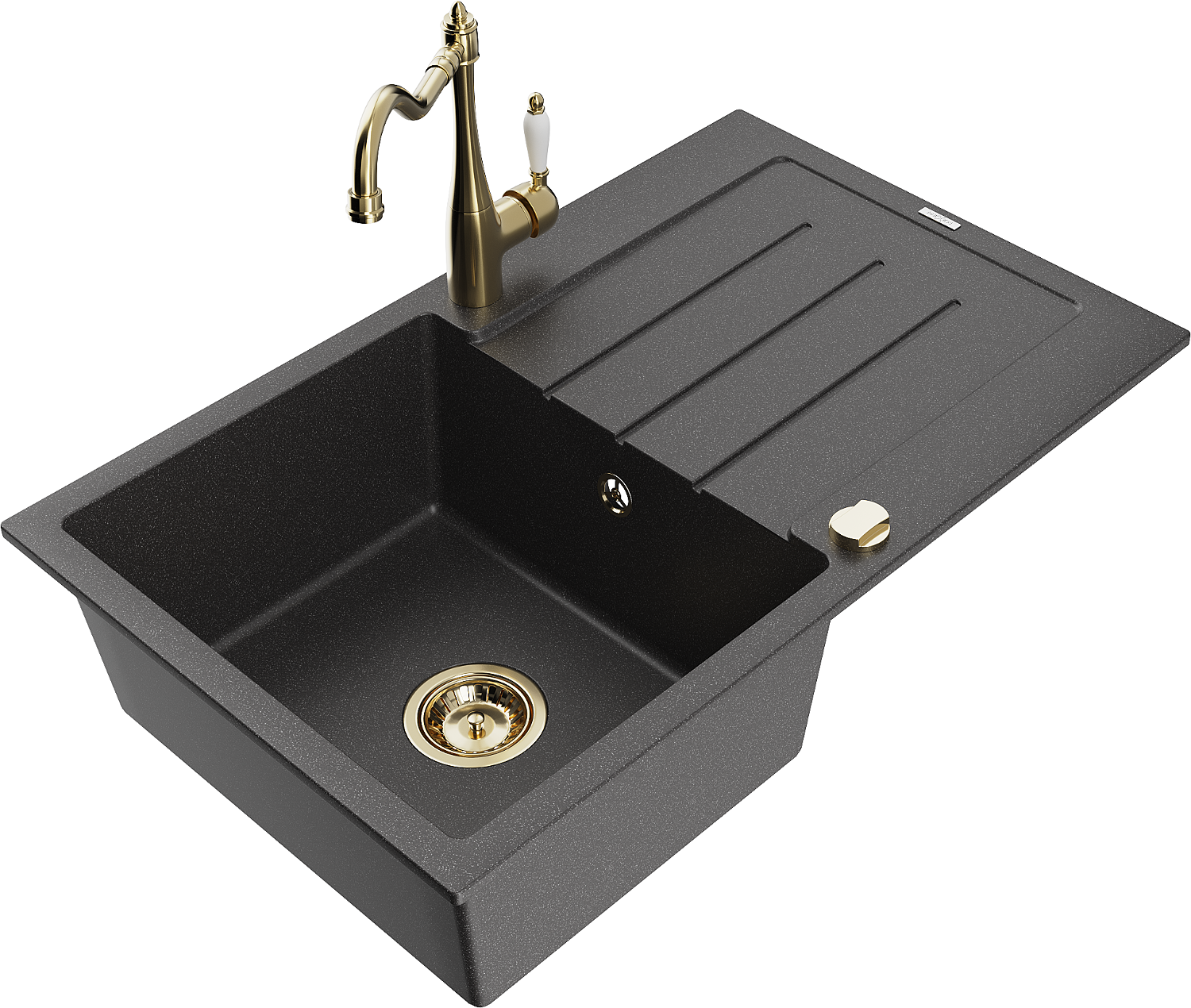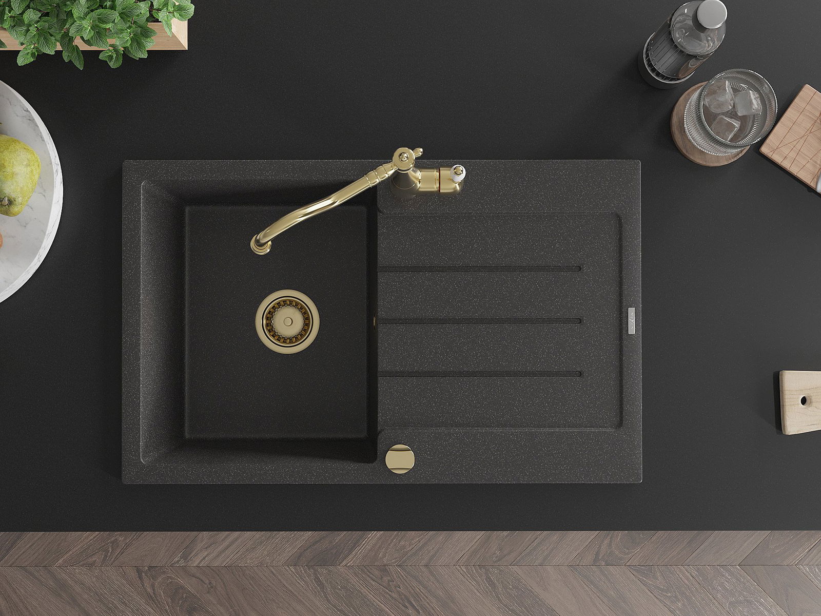Mexen Bruno granitizlietne vienkameru izlietne ar notekas paliktni un virtuves maisītāju Carla, melna ar punktiņiem