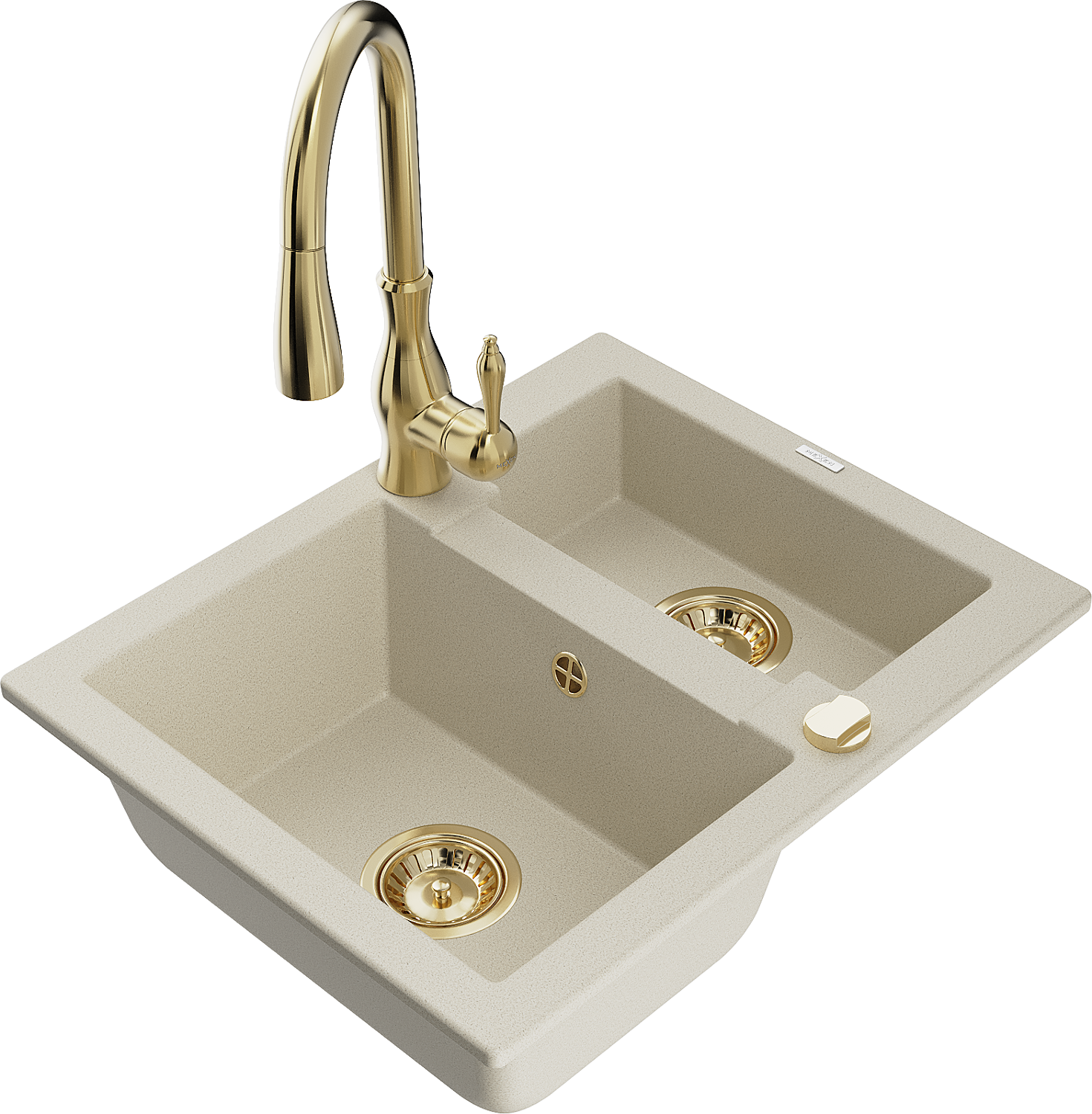 Mexen Carlos granitē izlietne ar 1,5 kamerām un virtuves krānu Savita, bēša - 6518-69-672601-50