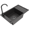 Mexen Elias granīta izlietne ar 1 nodalījumu, ar žāvētāju un virtuves krānu Telma, balta - 6511-20-670200-70