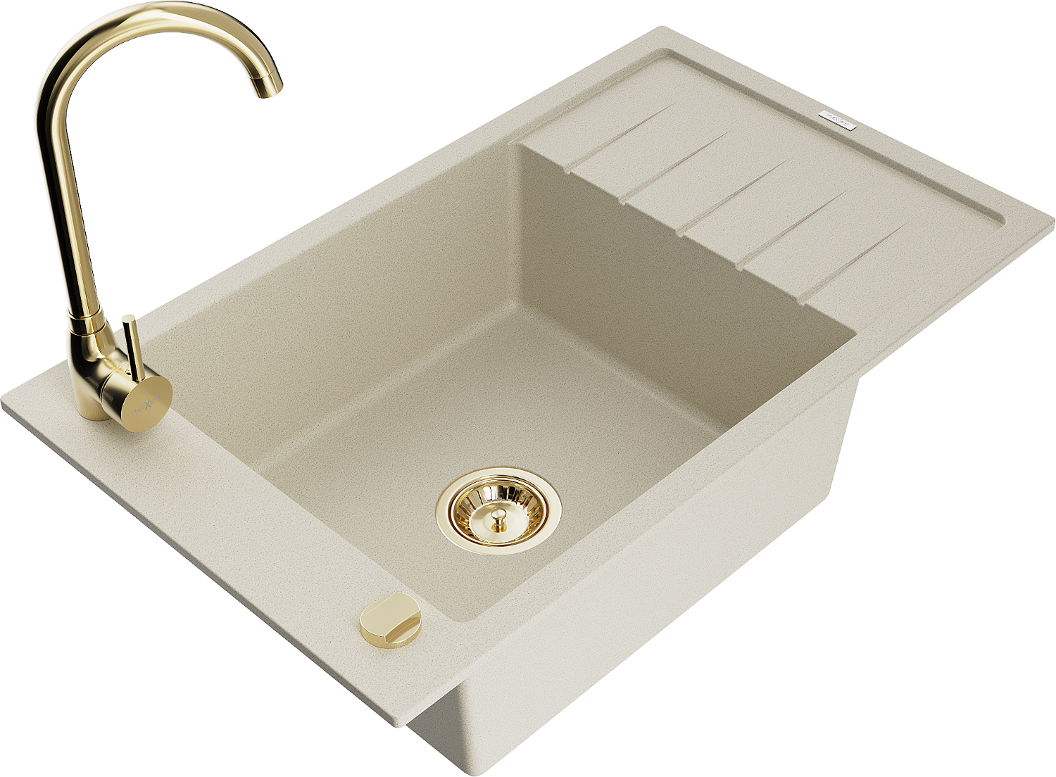 Mexen Elias granitā izlietne ar vienu nodalījumu un noteces vietu, un virtuves jaucējkrānu Telma, bēšs - 6511-69-670200-50