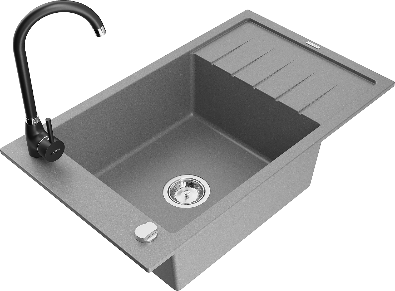 Mexen Elias granit izlietne ar vienu nodalījumu, noteces un virtuves jaucējkrānu Telma, pelēka - 6511-71-670200-70