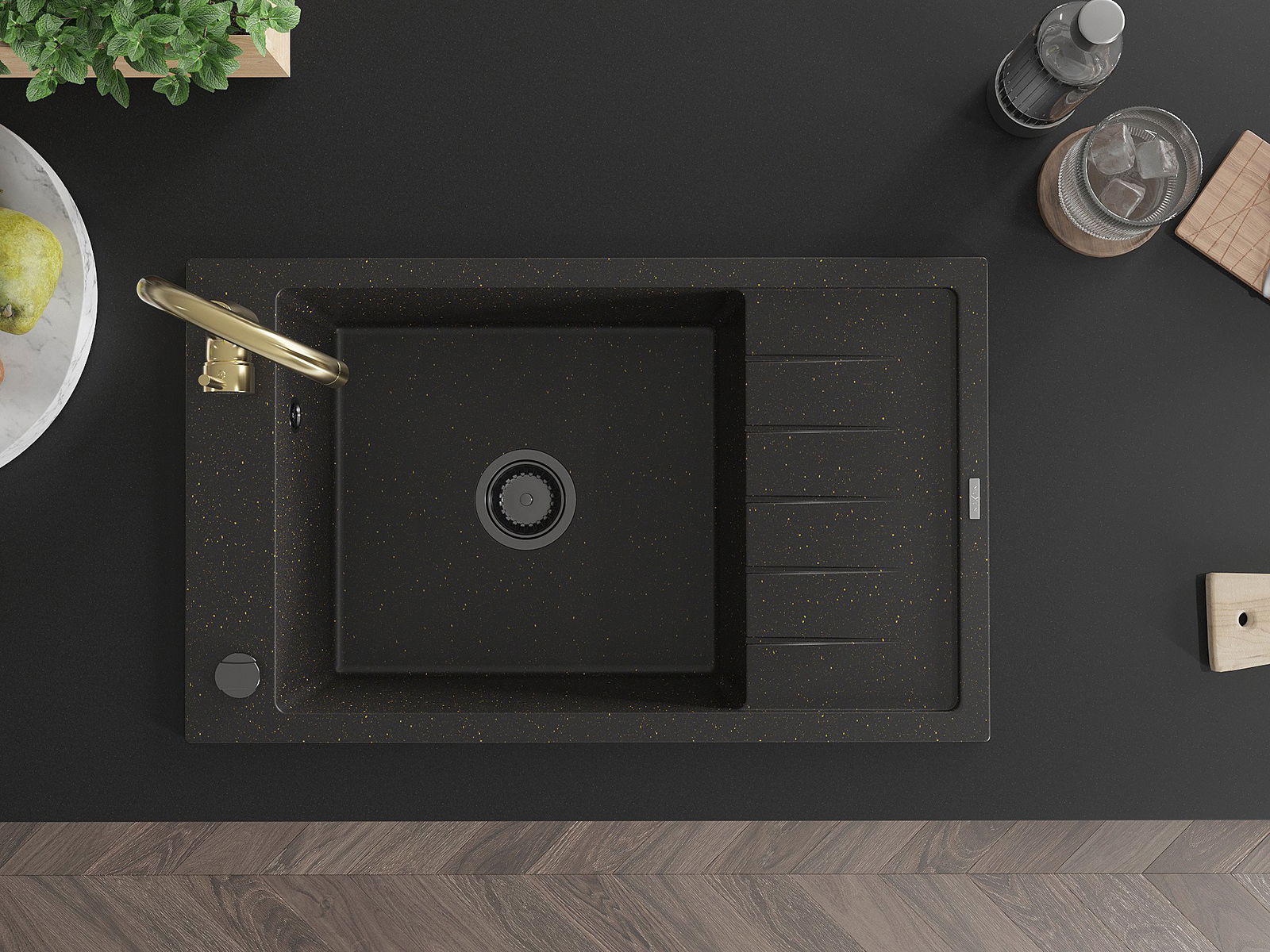 Mexen Elias 1-nodal grīdas izlietne ar noteci un virtuves jaucējkrānu Telma, melns/zeltains - 6511-75-670200-50-B