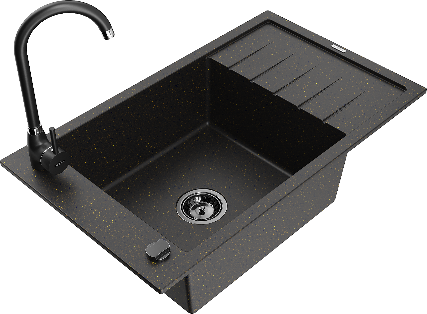Mexen Elias grants izlietne ar vienu nodalījumu ar noteku un Telma virtuves jaucējkrānu, melna/zeltaina - 6511-75-670200-70-B