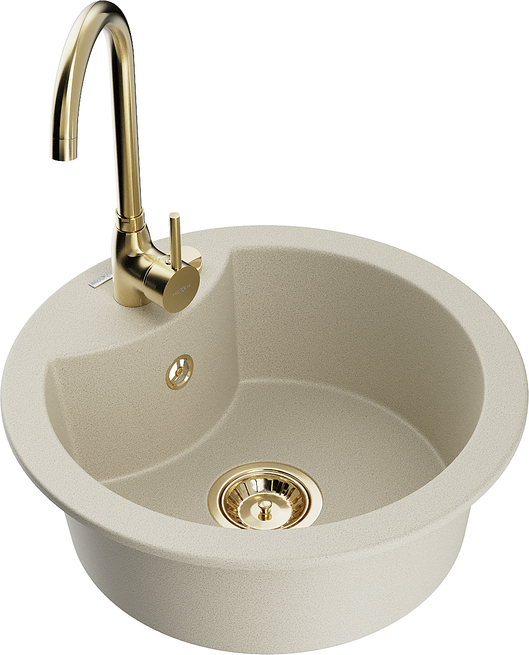 Mexen Diego granīta izlietne ar vienu nodalījumu un virtuves jaucējkrānu Telma, bēša - 6512-69-670200-50