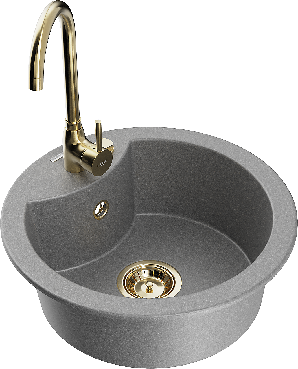 Mexen Diego granit izlietne ar 1 nodalījumu un virtuves jaucējkrānu Telma, pelēka - 6512-71-670200-50
