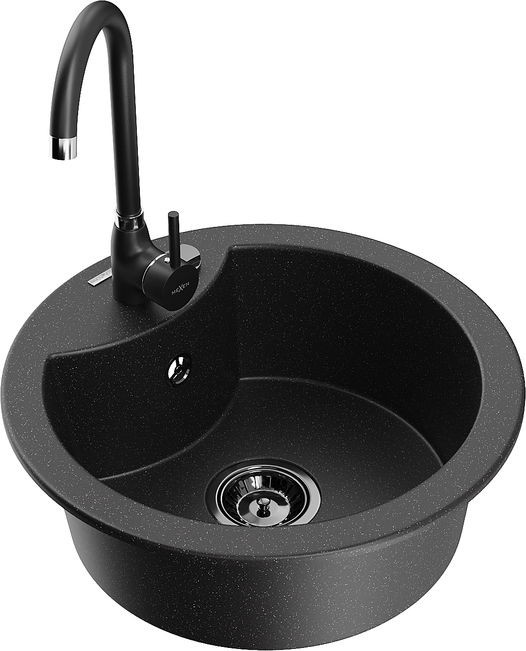 Mexen Diego granitais viena laika izlietne ar virtuves jaucējkrānu Telma, melns/sudrabs - 6512-73-670200-70-B