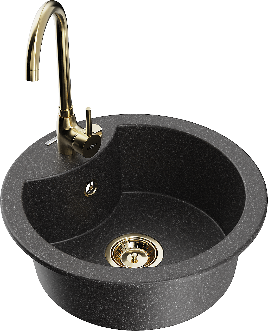 Mexen Diego granitizlietne ar vienu nodalījumu un virtuves jaucējkrāns Telma, melni raibs - 6512-76-670200-50