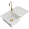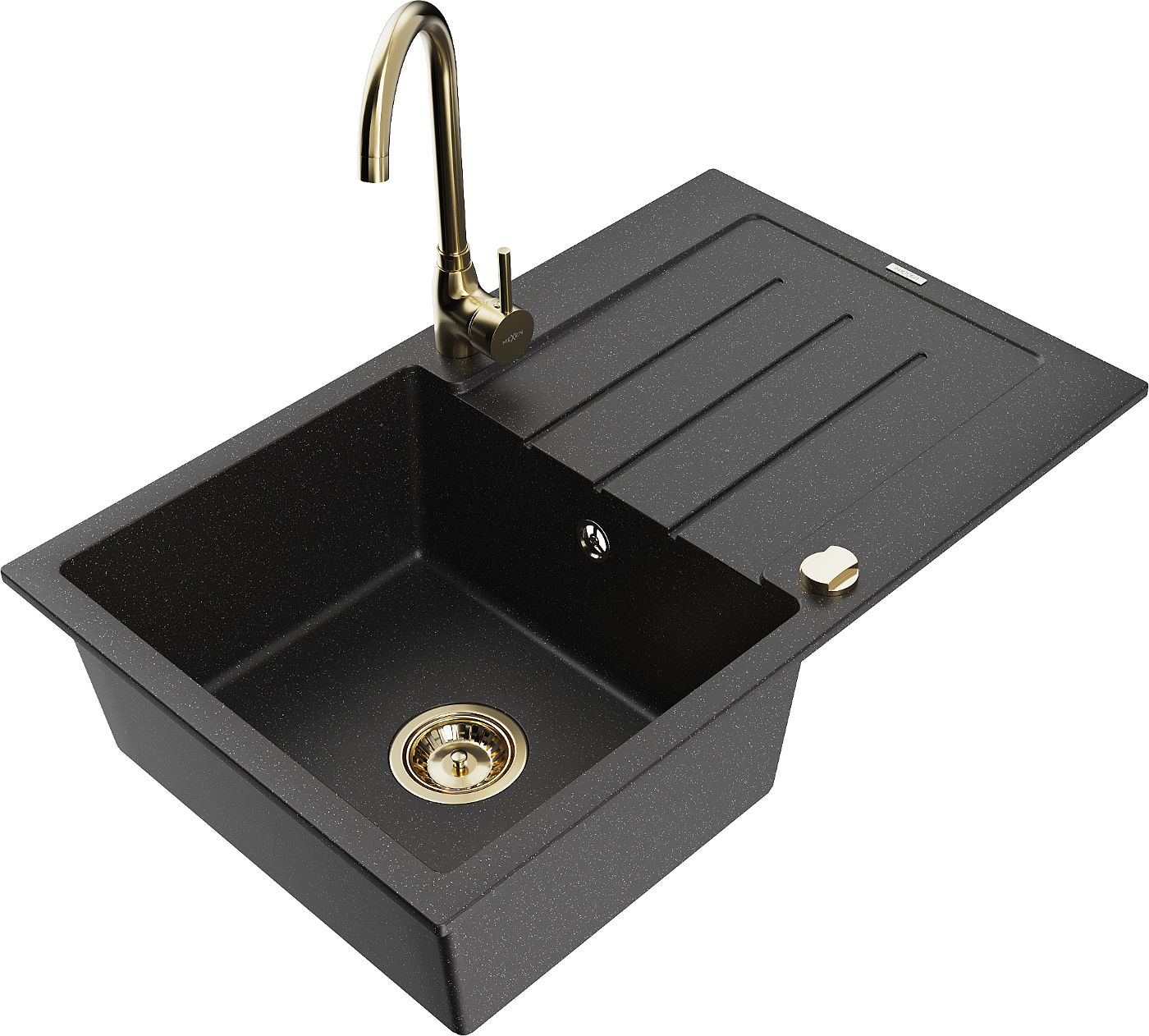 Mexen Bruno Granitizlietne 1-nodalījuma ar notecētāju un virtuves jaucējkrānu Telma, melns/sudrabs - 6513-73-670200-50