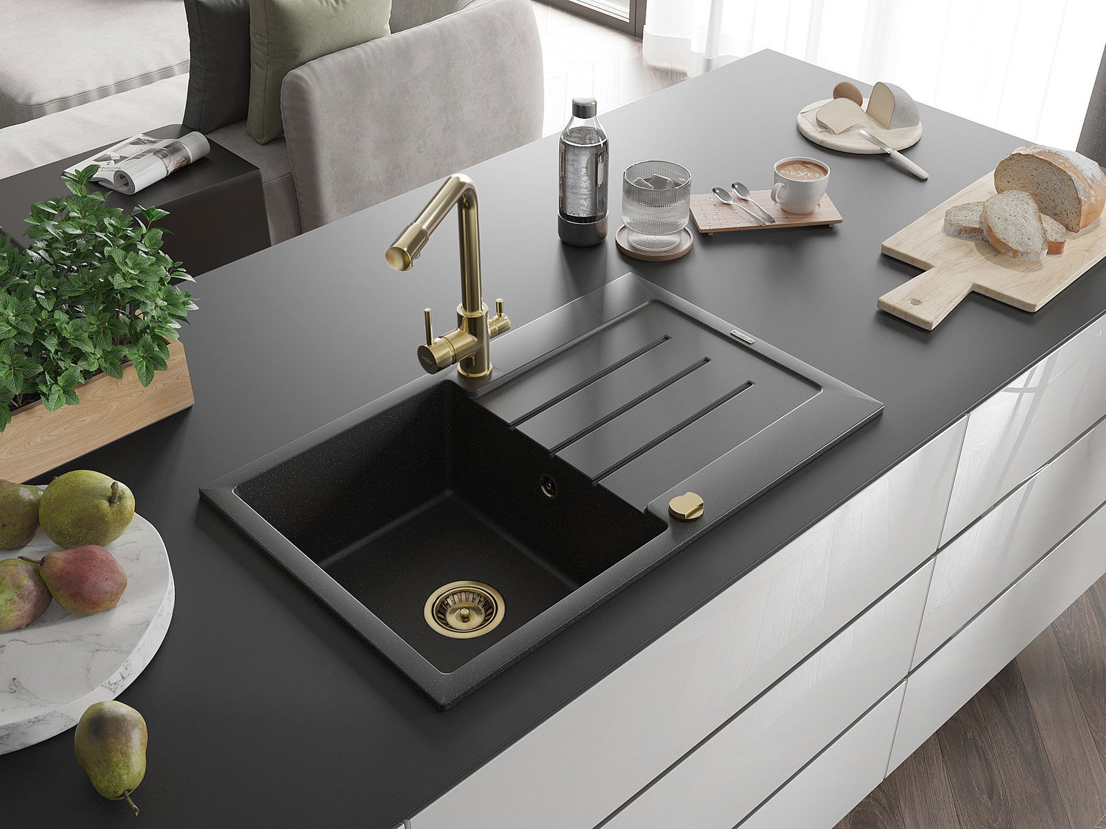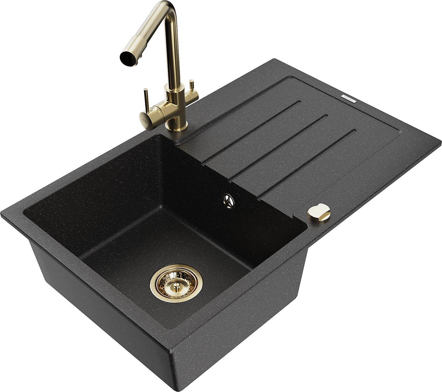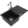 Mexen Bruno granitizlietne vienas kameras ar notekreni un virtuves jaucējkrānu Duero, melns/sudraba metālika