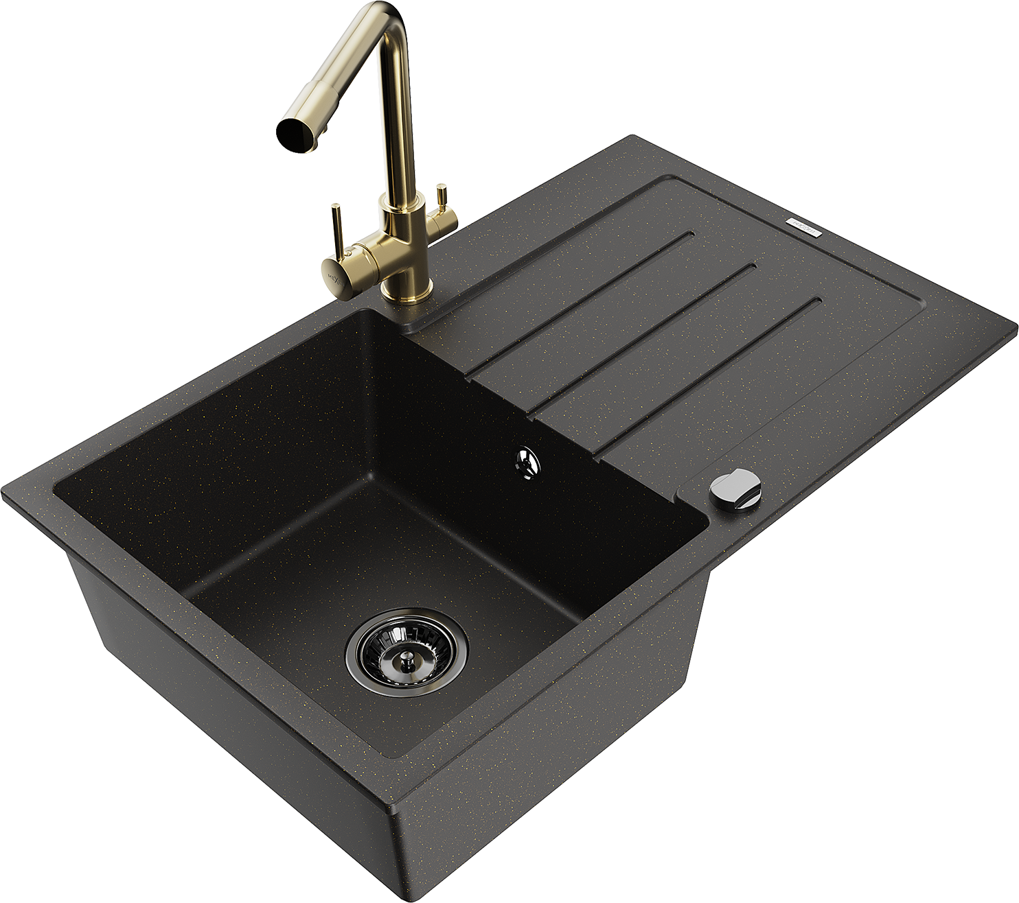 Mexen Bruno granitizlietne ar vienu kameru un noteku, ar virtuves maisītāju Duero, melns/zelta metālisks