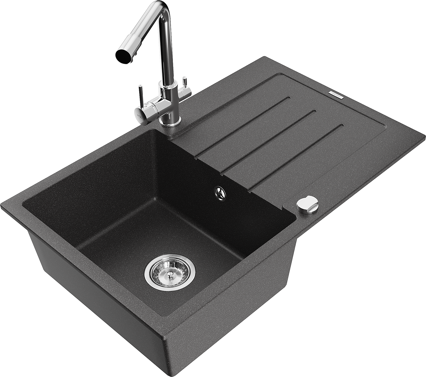 Mexen Bruno 1 nodalījuma granīta izlietne ar noteku un virtuves jaucējkrānu Duero, melns krāsots - 6513-76-671600-00
