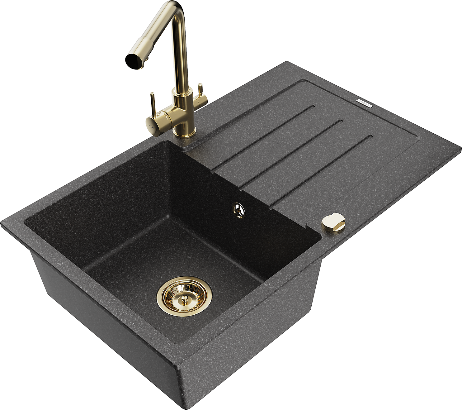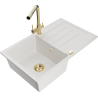 Mexen Bruno granitizlietne ar vienu nodalījumu ar plauktu un virtuves jaucējkrānu Duero, melna ar punktiem - 6513-76-671600-50