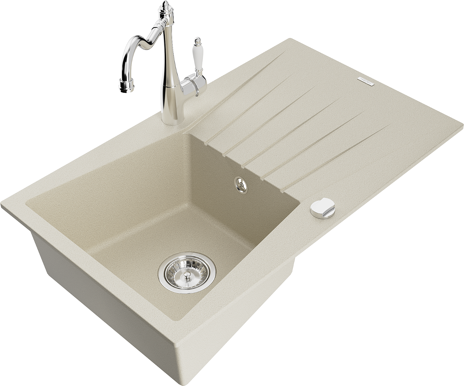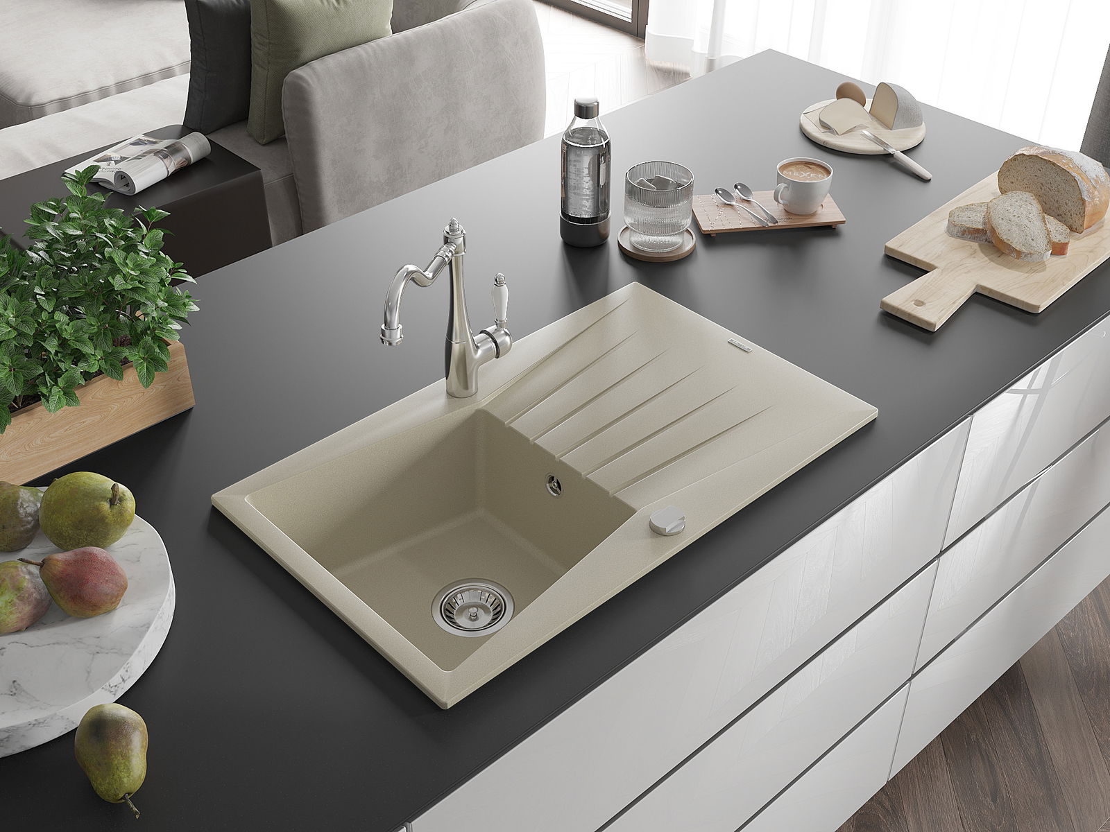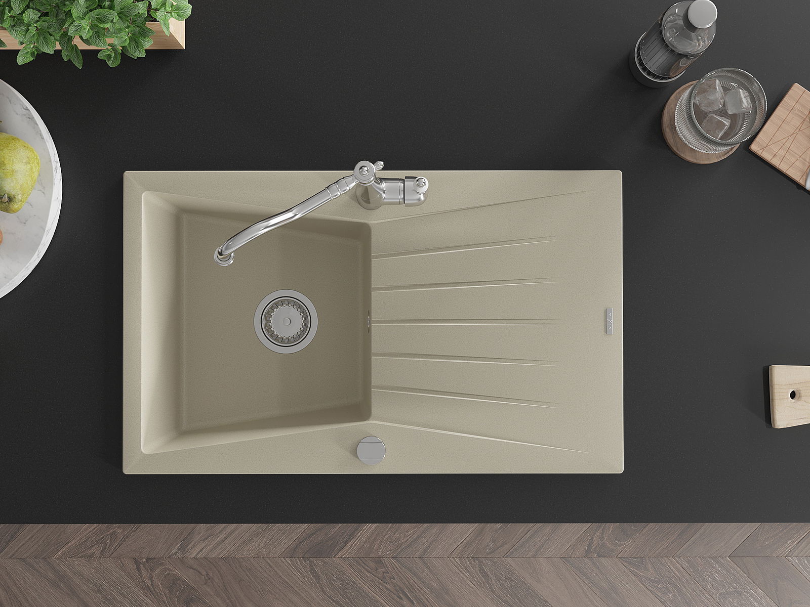 Mexen Cesar granitna izlietne ar vienu nodalījumu un noteces vietu un virtuves jaucējkrānu Carla, bēšā - 6514-69-670700-00