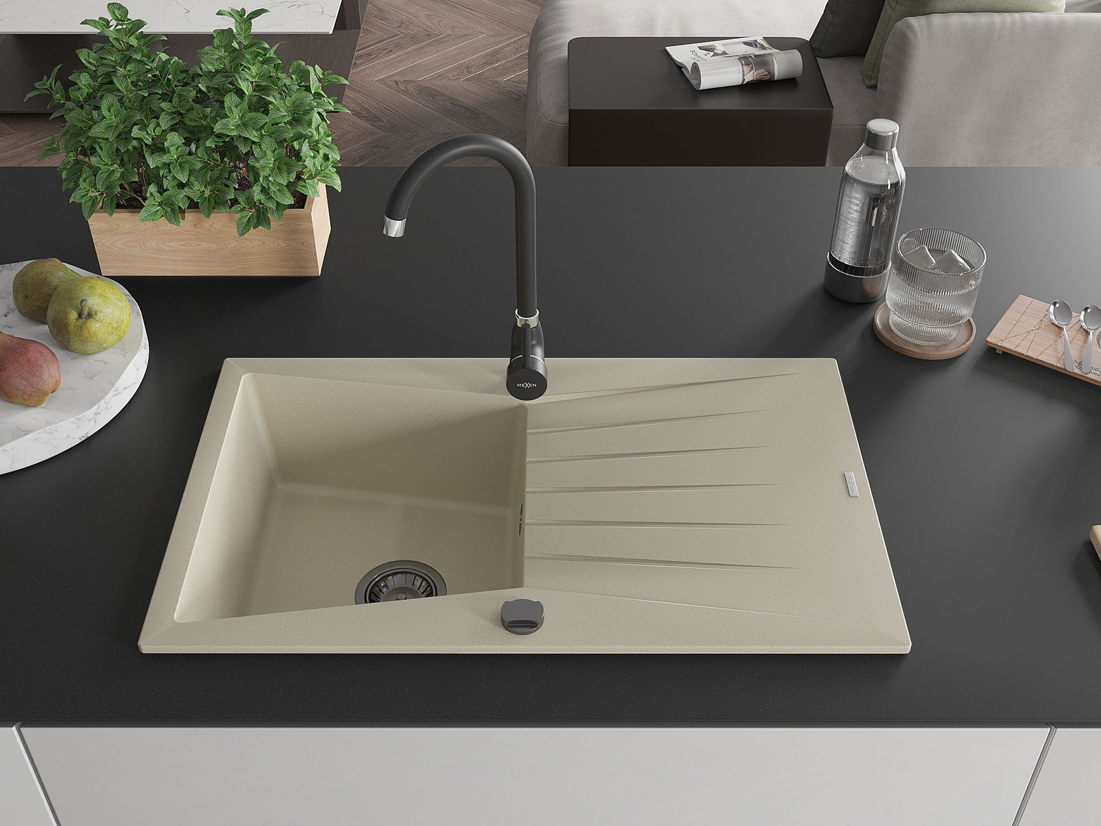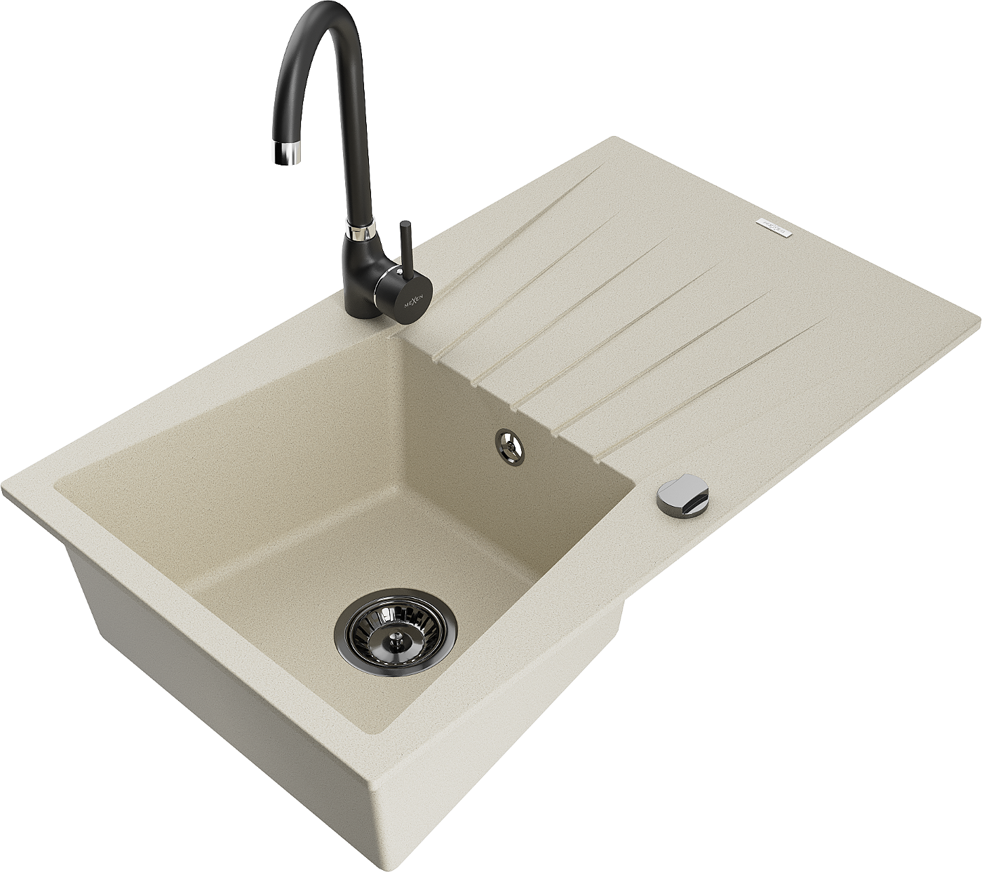 Mexen Cesar granit izlietne ar vienu nodalījumu un notecētāju, un virtuves jaucējkrānu Telma, bēšs - 6514-69-670200-70