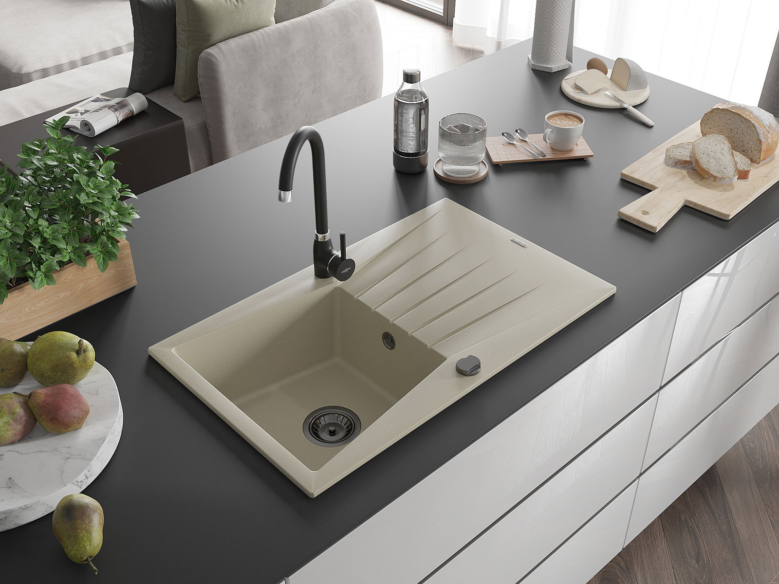 Izlietnes virsma ir izturīga pret traipiem un krāsas izmaiņām, tāpēc to ir viegli uzturēt tīru un tā saglabā savu krāsu ilgu lietošanas laiku. Estētiski un praktiski papildina jebkuru virtuvi.