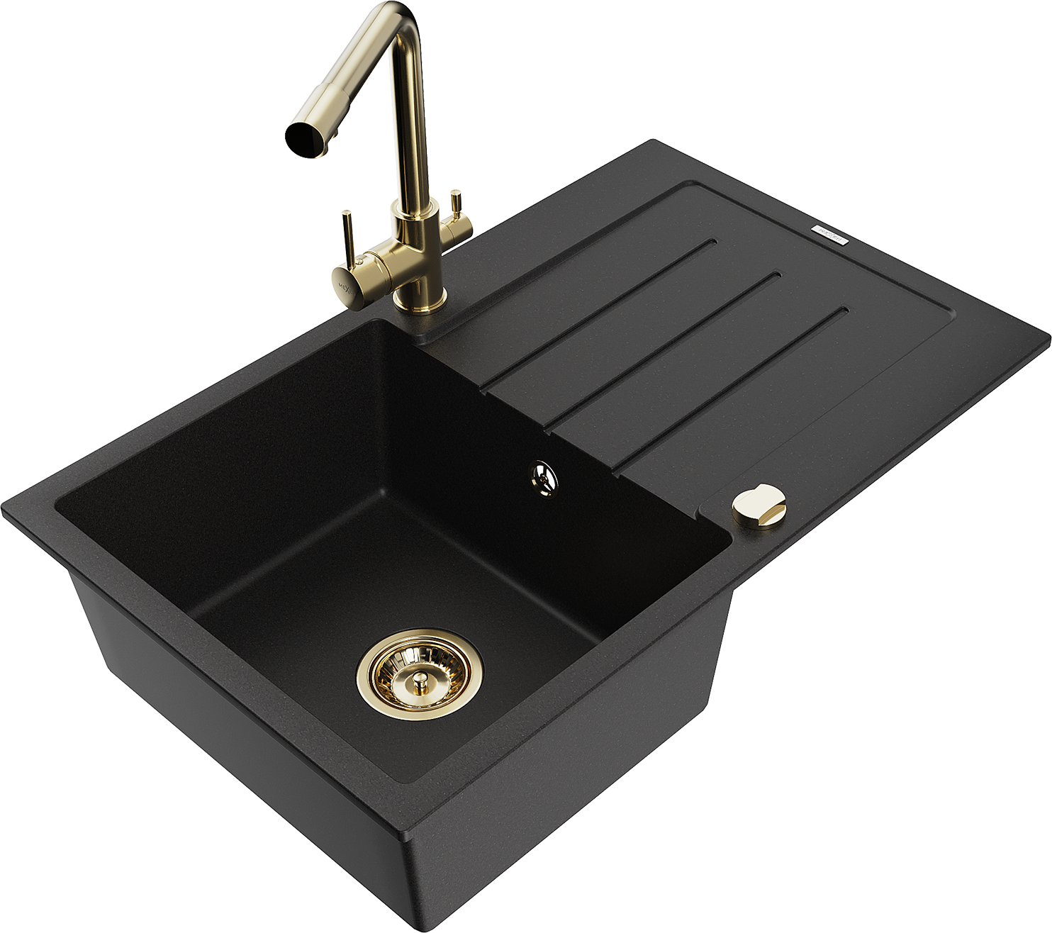 Mexen Bruno granit izlietne ar vienu nodalījumu, ar noteku un virtuves jaucējkrānu Duero, melna - 6513-77-671600-50