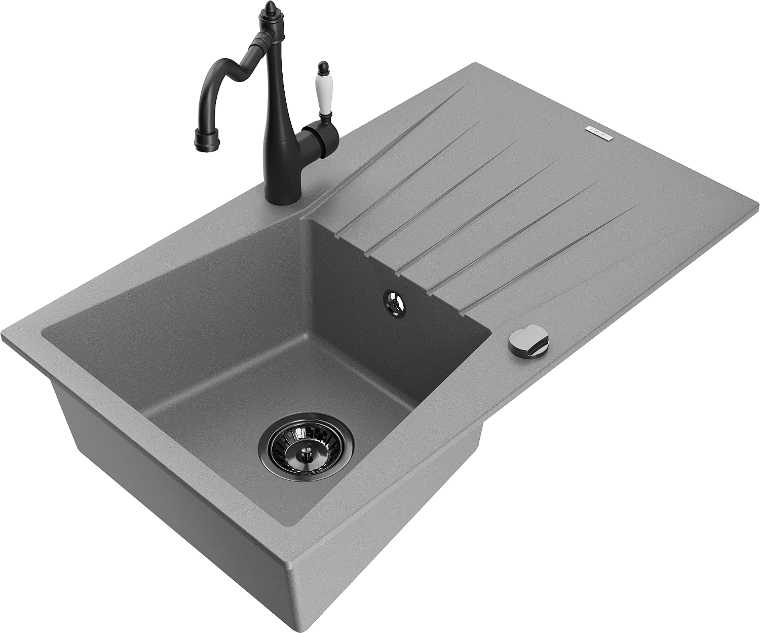 Mexen Cesar vienas granīta izlietne ar noteku un virtuves jaucējkrānu Carla, pelēka - 6514-71-670700-70-B