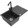 Mexen Bruno granitā izlietne ar vienu kameru, noteka un virtuves jaucējkrānu Duero, melna - 6513-77-671600-70