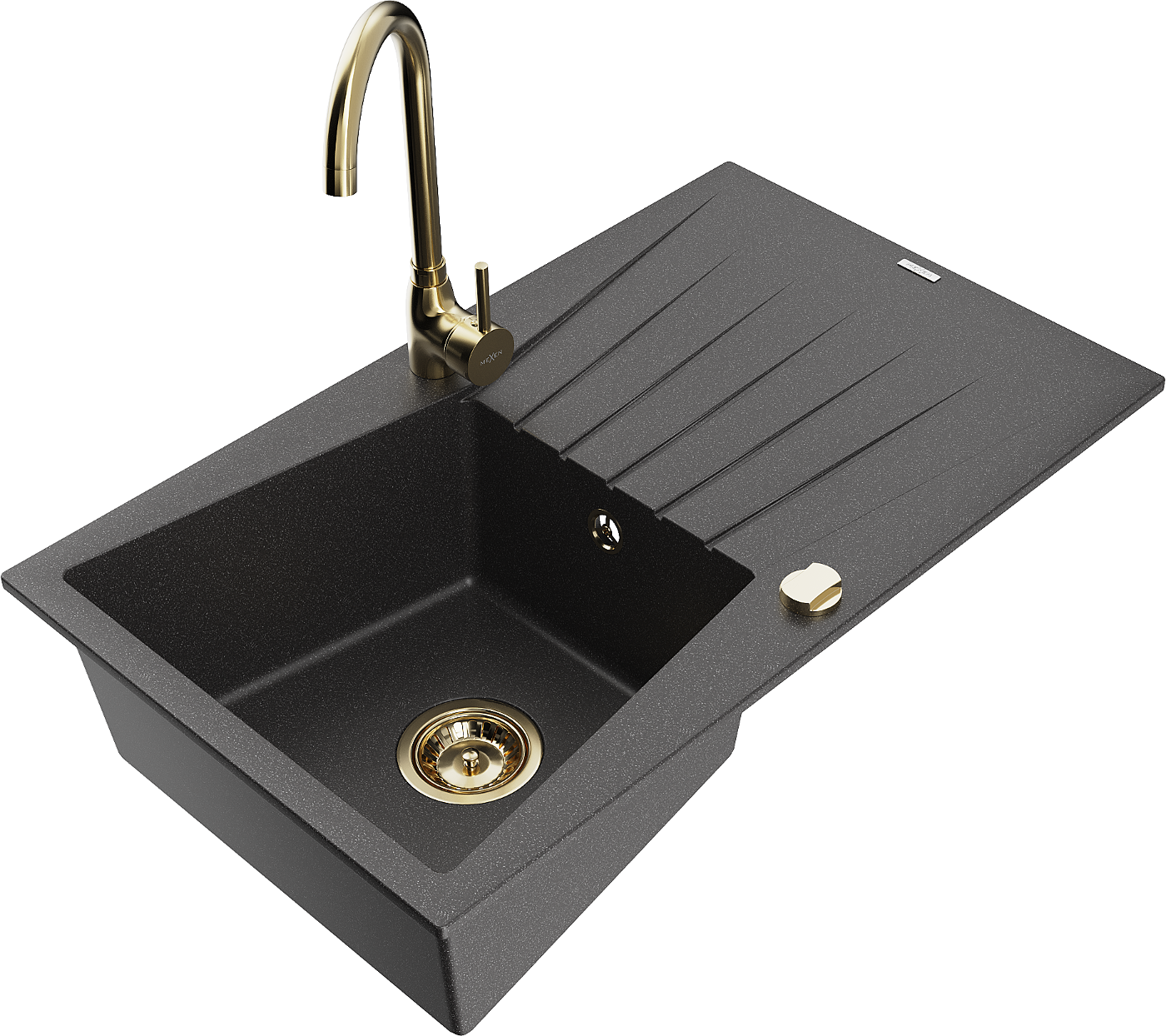 Mexen Cesar granīta izlietne ar vienu nodalījumu ar noteces zonu un virtuves krānu Telma, melna raibumaina - 6514-76-670200-50