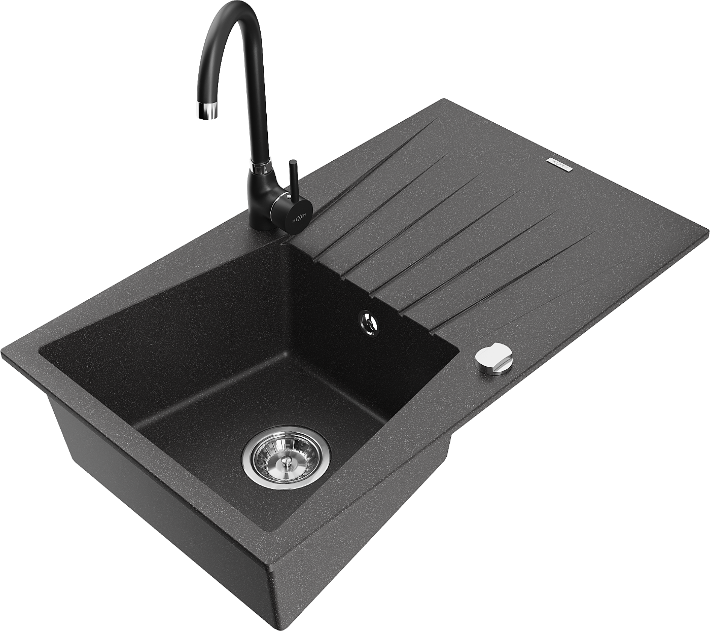Mexen Cesar granitizlietne ar vienu kameru un noteces vietu un virtuves vannasistabu Telma, melns ar plankumiem