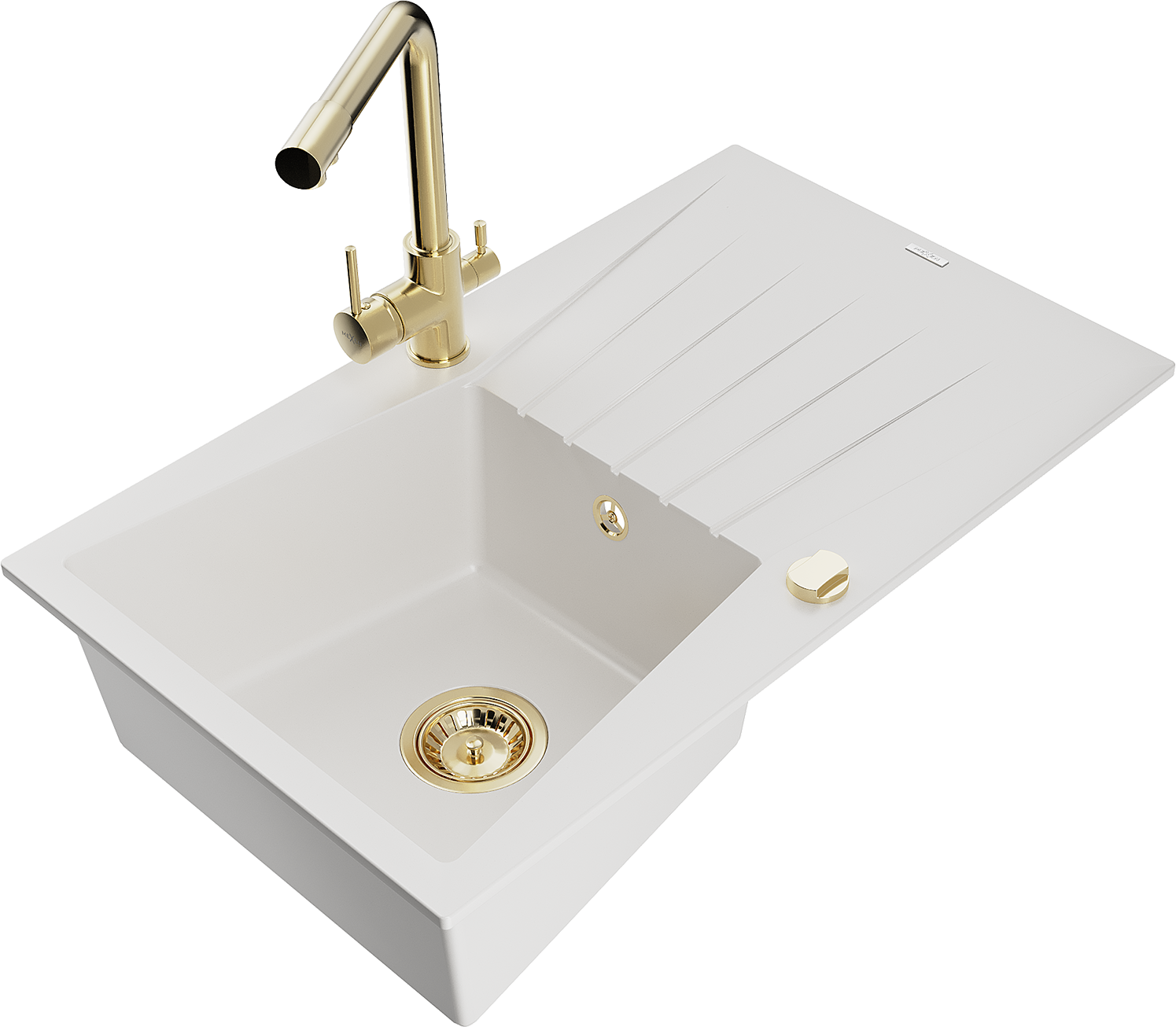 Mexen Cesar Grants izlietne ar vienu nodalījumu un noteci, kā arī virtuves jaucējkrānu Duero, balta - 6514-20-671600-50