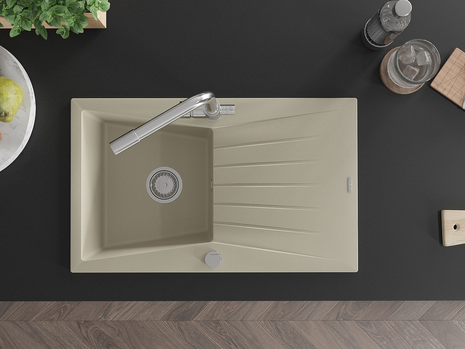 Mexen Cesar granitizlietne 1-kameras izlietne ar noteku un virtuves krānu Duero, bēšs - 6514-69-671600-00