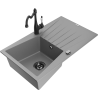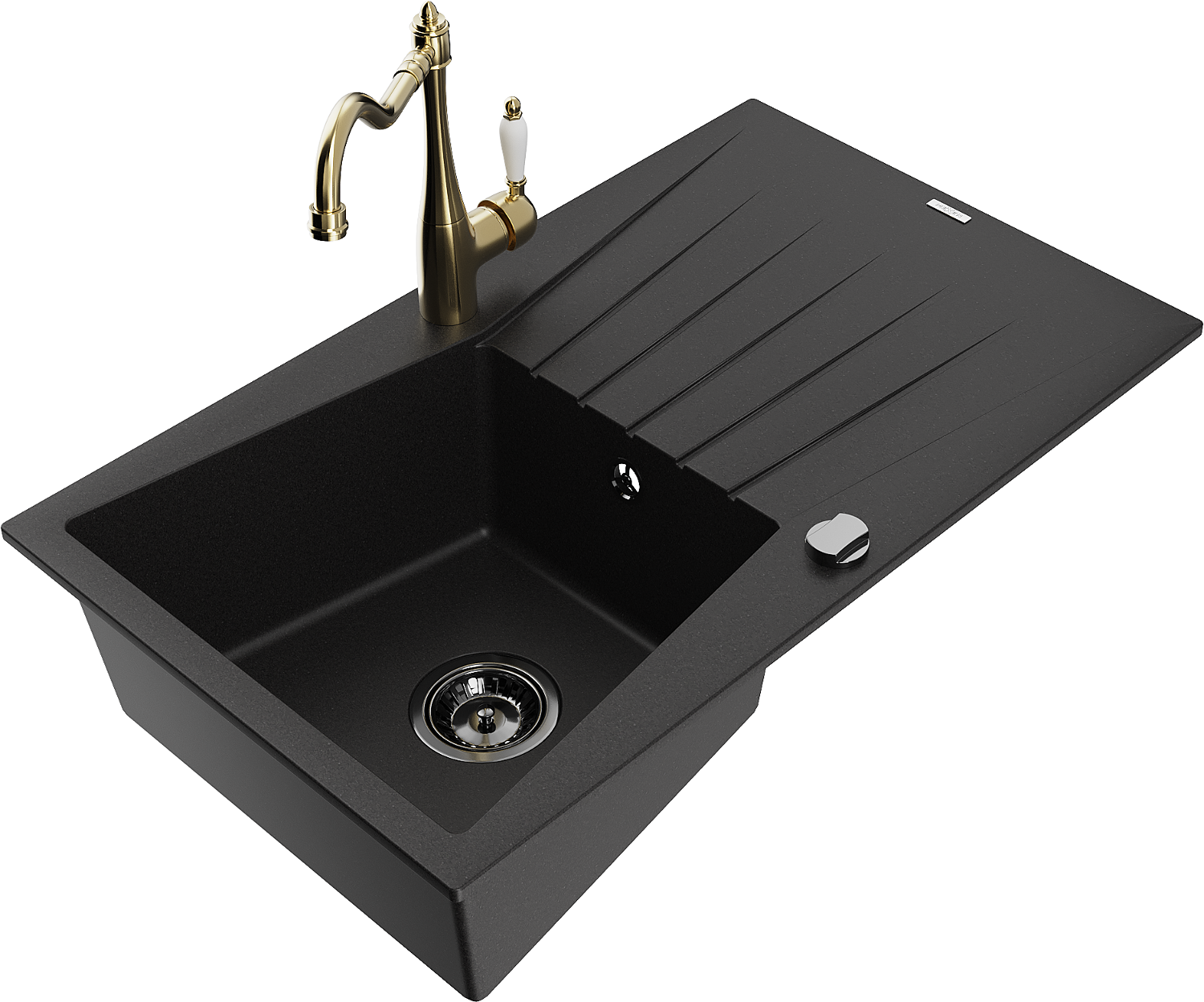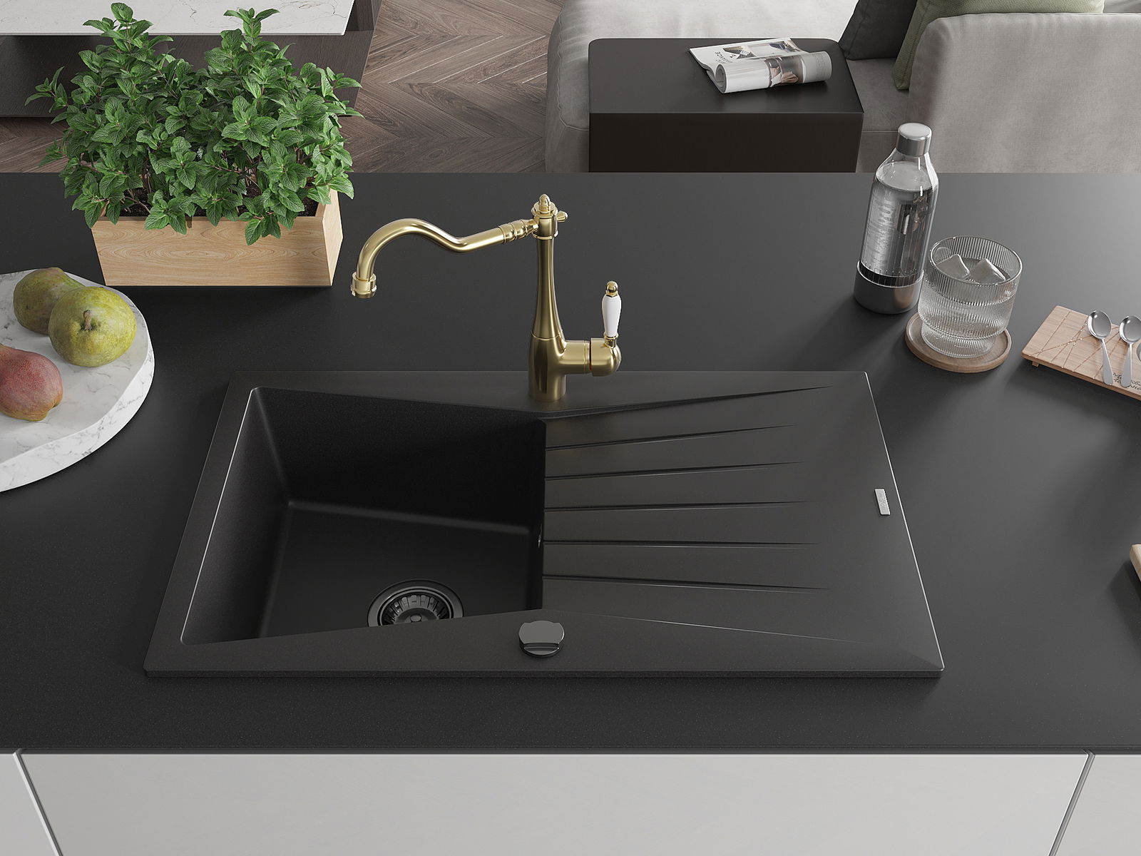 Mexen Cesar granit izlietne ar vienu nodalījumu, noteces virsmu un virtuves jaucējkrānu Carla, melna - 6514-77-670700-50-B