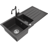 Mexen Andres granitē izlietne ar 1,5 nodalījumiem un notecējumu, ar virtuves krānu Carla, balta - 6515-20-670700-20