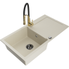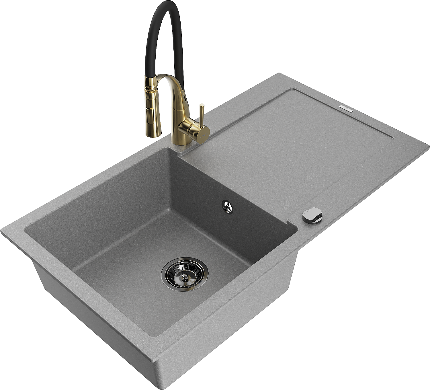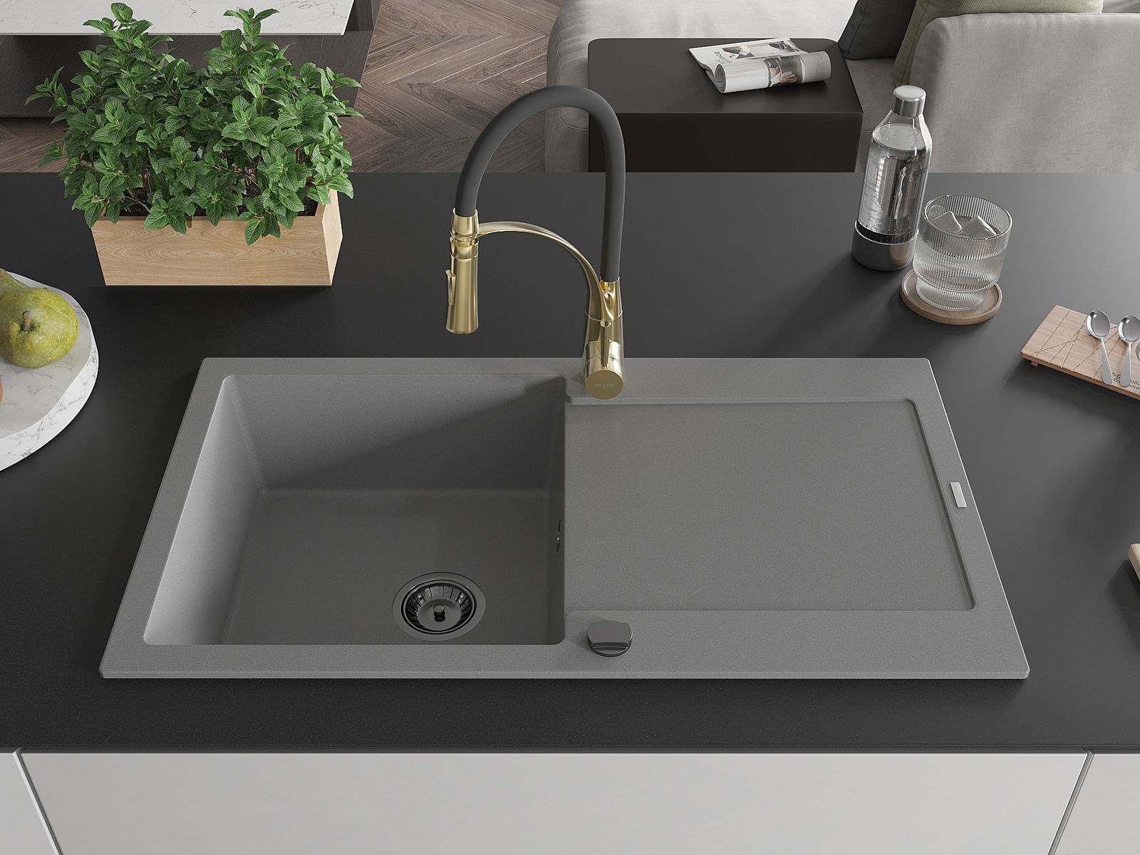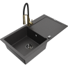 Mexen Leo granit izlietne ar vienu nodalījumu ar noteces vietu un virtuves jaucējkrāns Aster, pelēks - 6501-71-73450-57-B