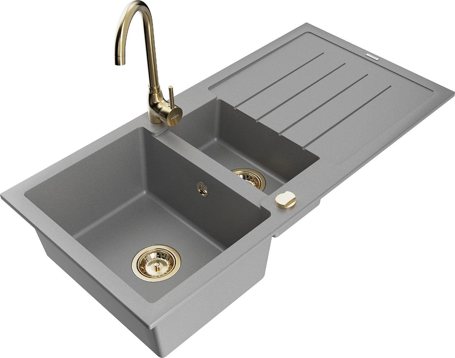 Mexen Andres granitizlietne 1,5 nodalījumu ar notecināšanas un virtuves krānu Telma, pelēks - 6515-71-670200-50