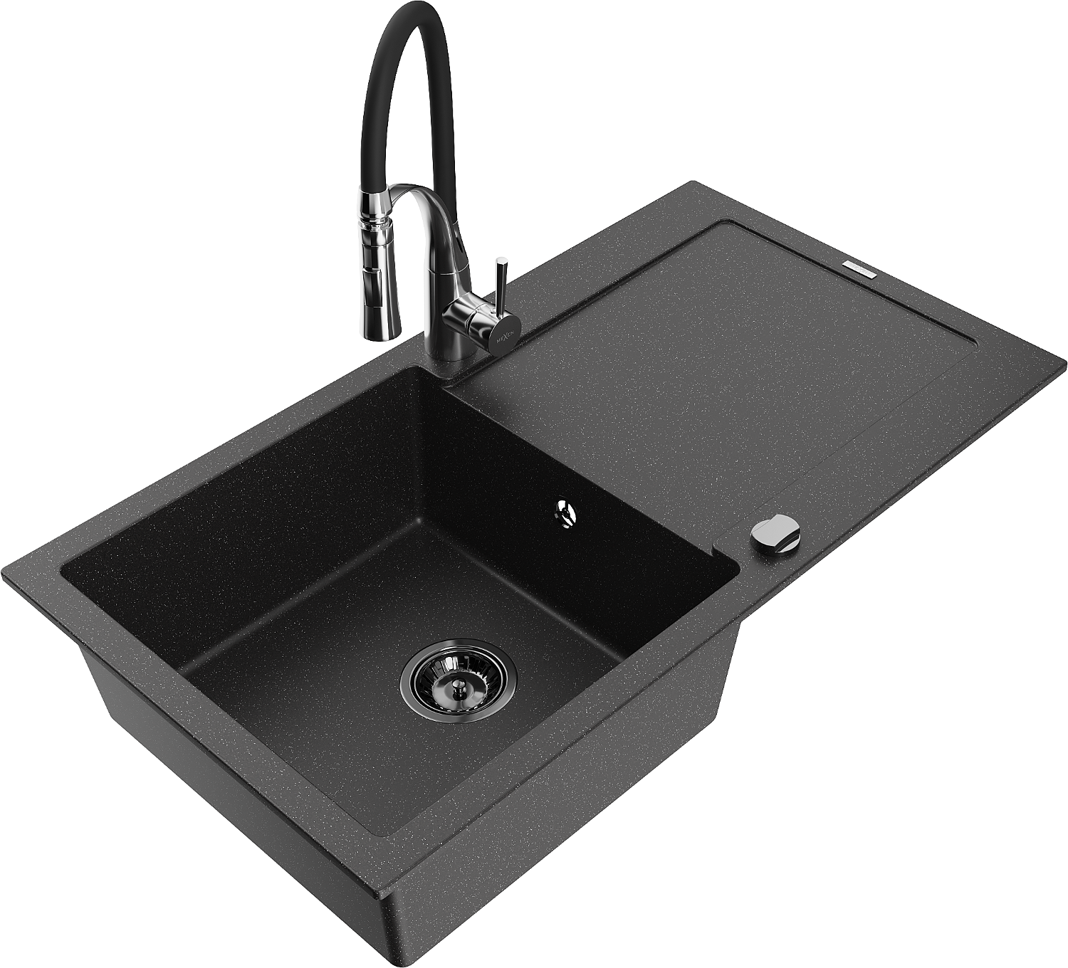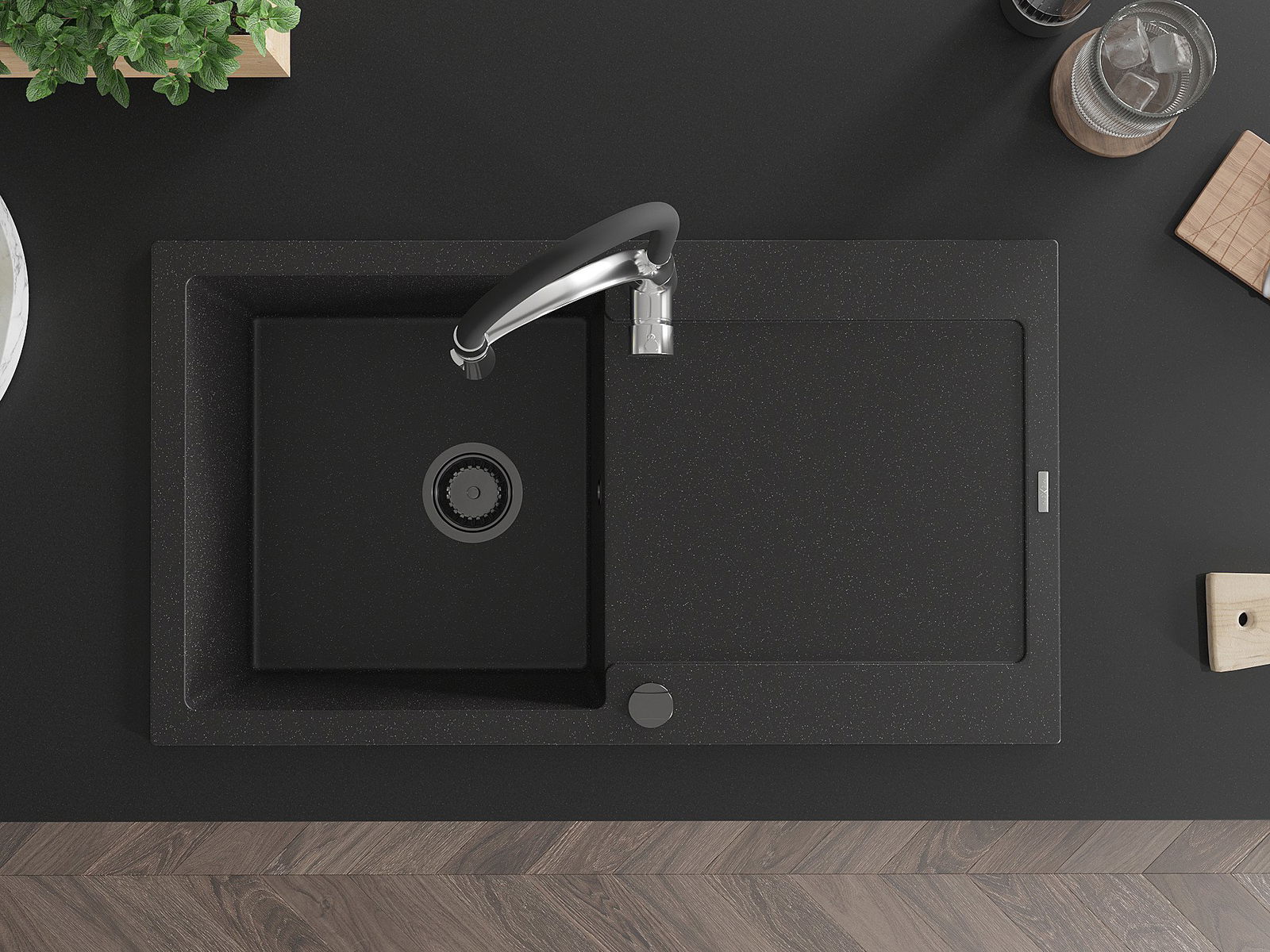 Mexen Leo Grinīta izlietne ar vienu nodalījumu un noteces vietu, virtuve Aster, melns/sudraba metāliks - 501-73-73450-07-B