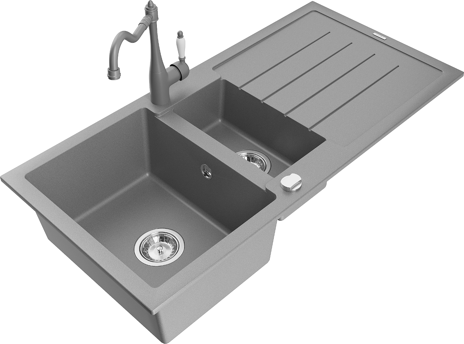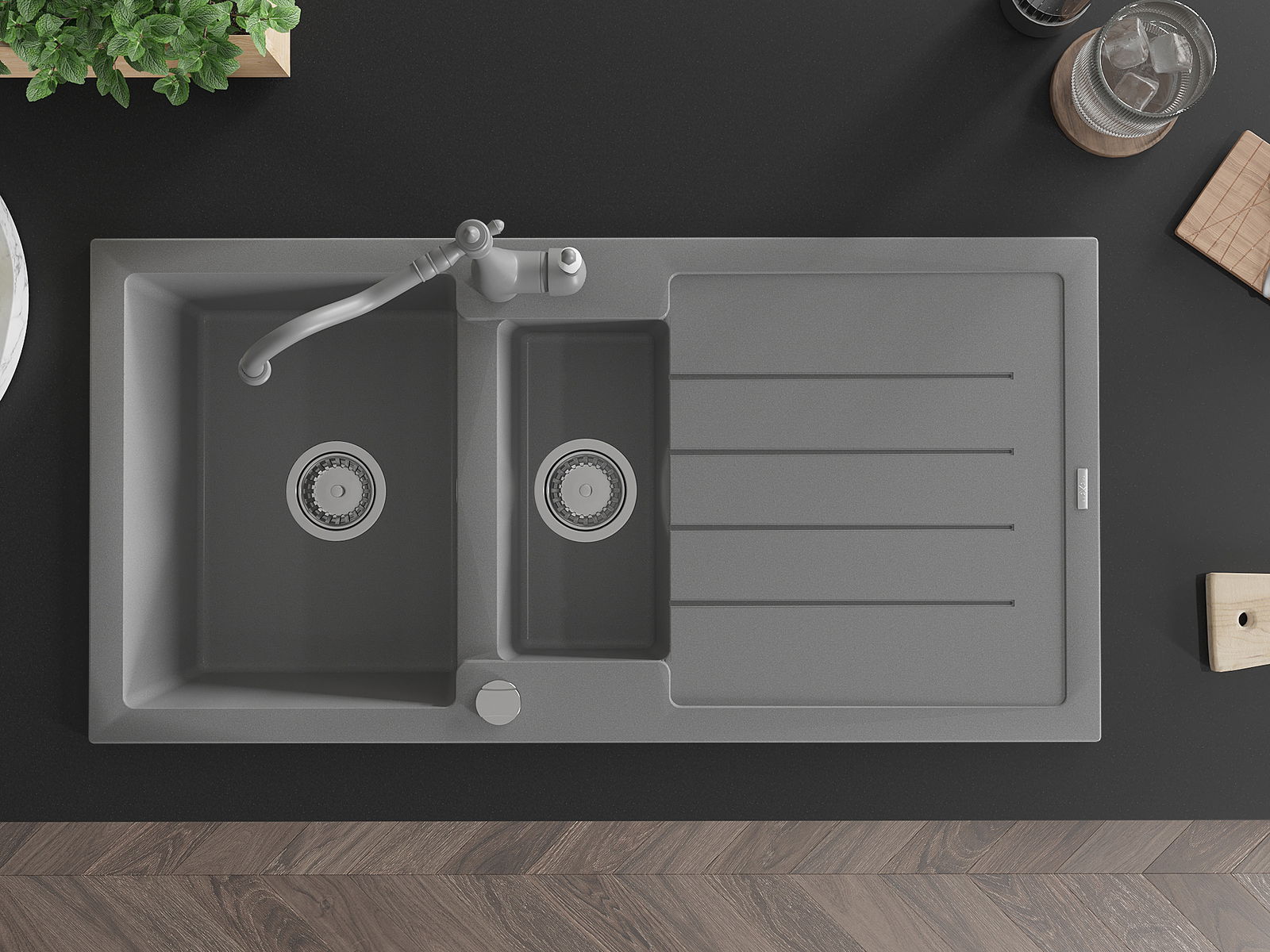 Mexen Andres granta izlietne ar 1,5 nodalījumu, iztecinātāju un virtuves jaucējkrānu Carla, pelēka - 6515-71-670700-71