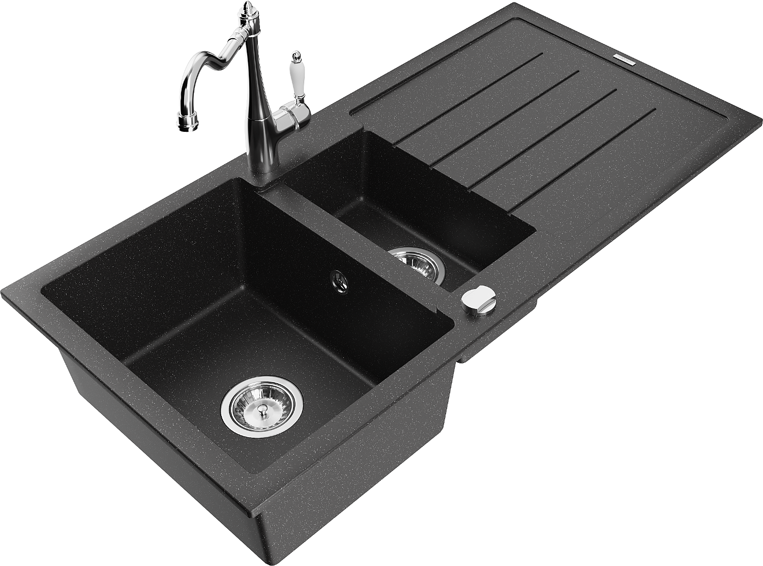 Mexen Andres granitizlietne ar 1,5 nodalījumu, ar noteces un virtuves jaucējkrānu Carla, melns/sudrabains - 6515-73-670700-00