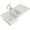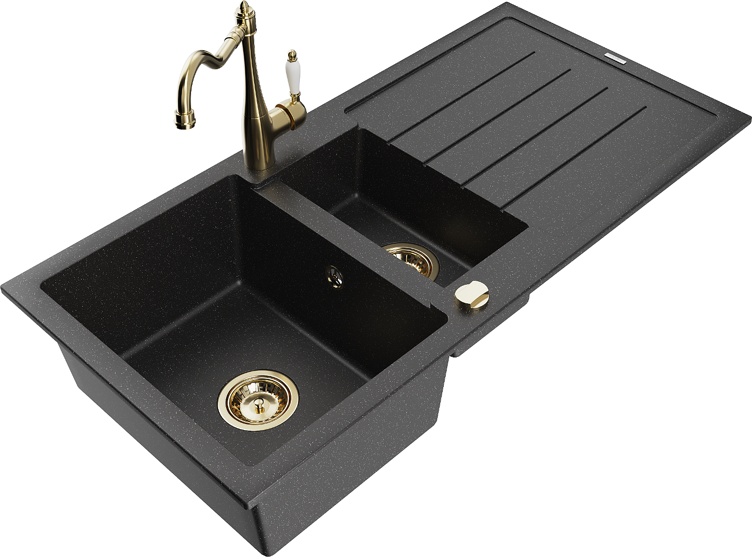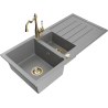 Mexen Andres grānīta izlietne ar 1,5 nodaļu un žāvētāju, ar virtuves jaucējkrānu Carla, melna/sudraba - 6515-73-670700-50