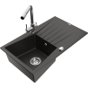 Mexen Cesar granitā izlietne ar vienu nodalījumu, noteku un virtuves jaucējkrānu Duero, melna - 6514-77-671600-00