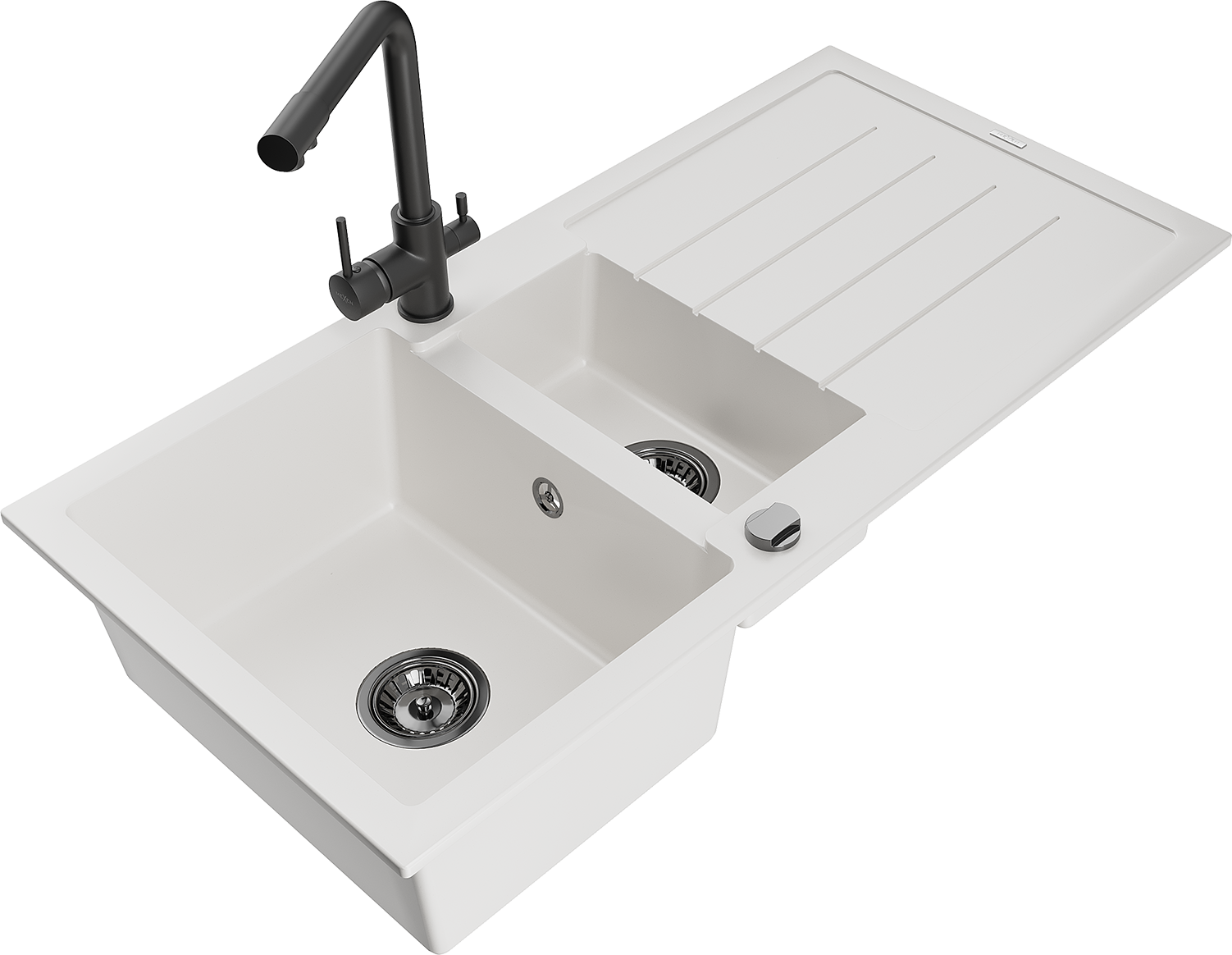 Mexen Andres granīta izlietne ar 1,5 kameru un noteces vietu un virtuves jaucējkrānu Duero, balta - 6515-20-671600-70