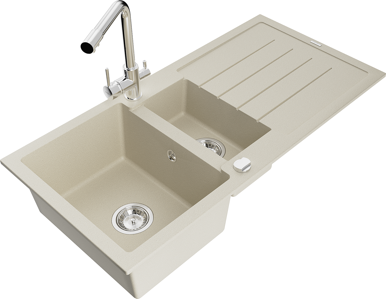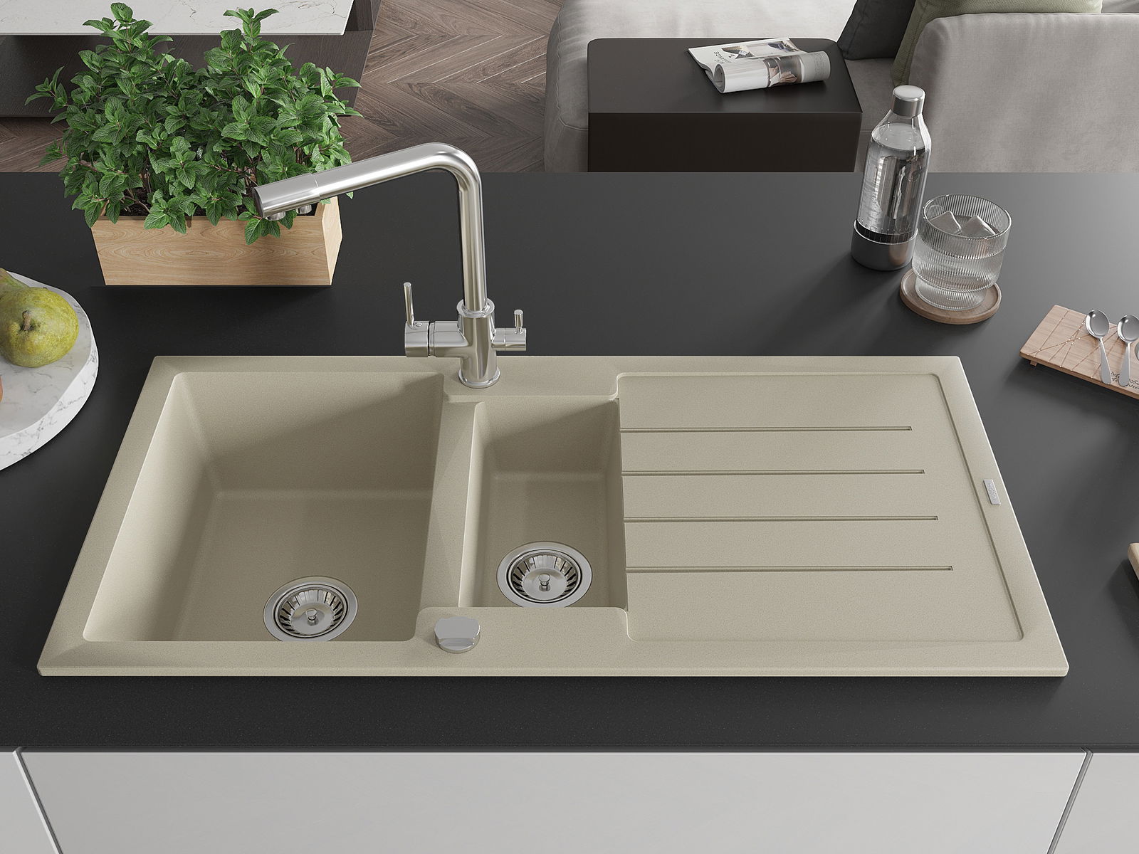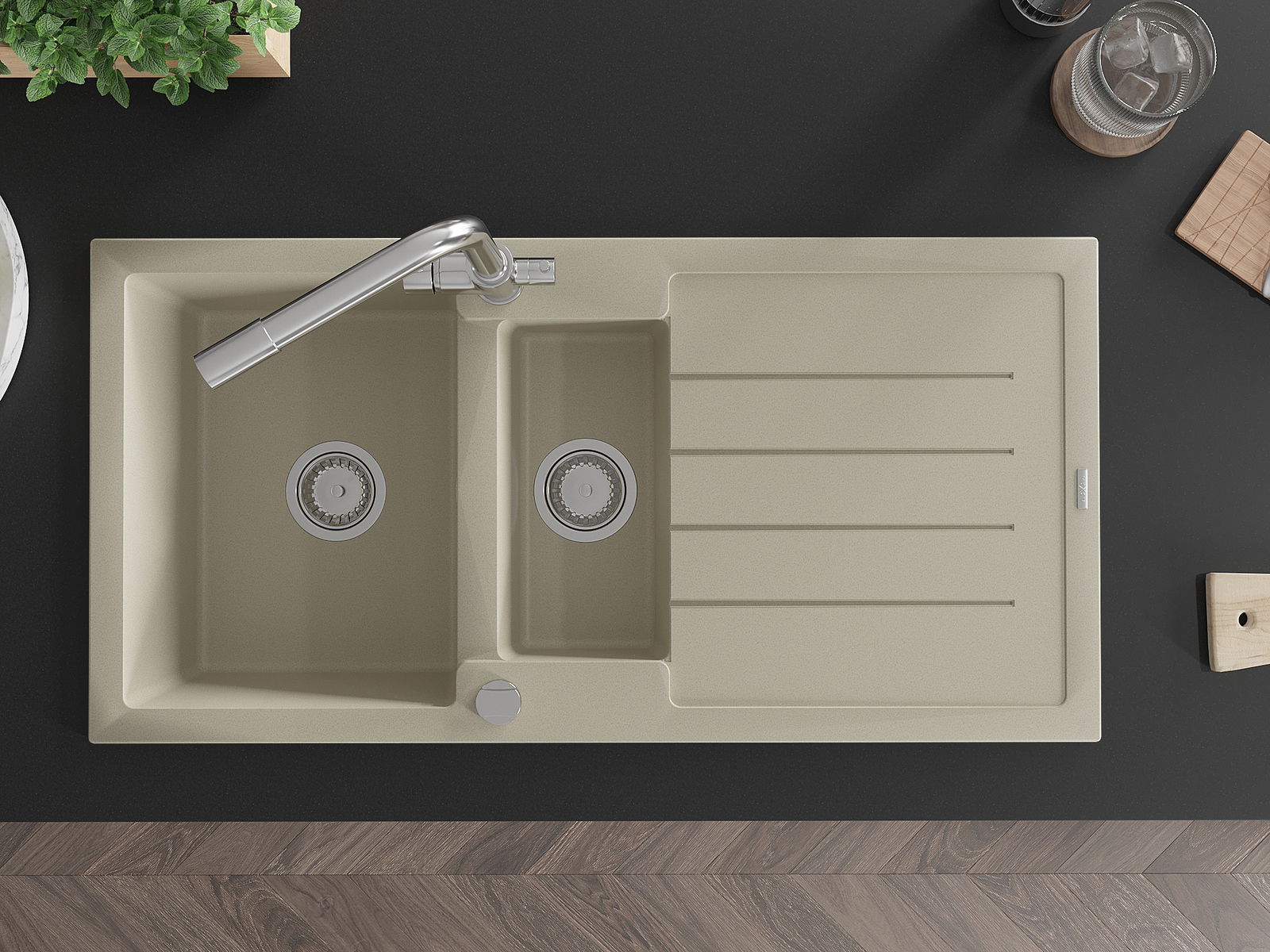 Mexen Andres granitē izlietne ar pusotru nodalījumu un noteces virsmu un virtuves jaucējkrānu Duero, bēša - 6515-69-671600-00